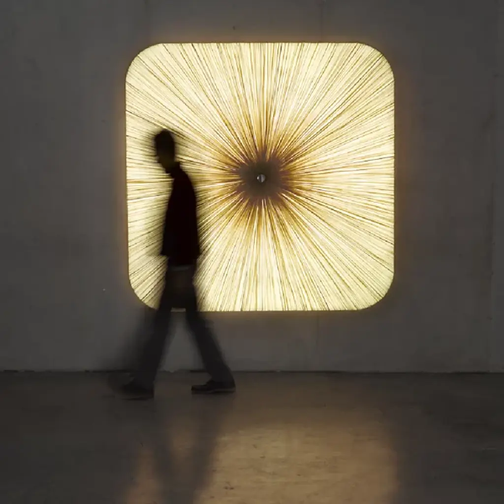 Named and designed after Nara, the ancient Japanese capital. Exhibiting a grid-like pattern reminiscent of the ancient capital city, the Nara Wall / Flushmount by Aqua Creations takes the shape of a rounded square. This luminaire utilizes four power-efficient LED modules and a handcrafted pleated silk shade that evenly diffuses light along its surface. The LED modules are dimmable and allow the user to adjust the light intensity to create the perfect atmosphere in any setting.