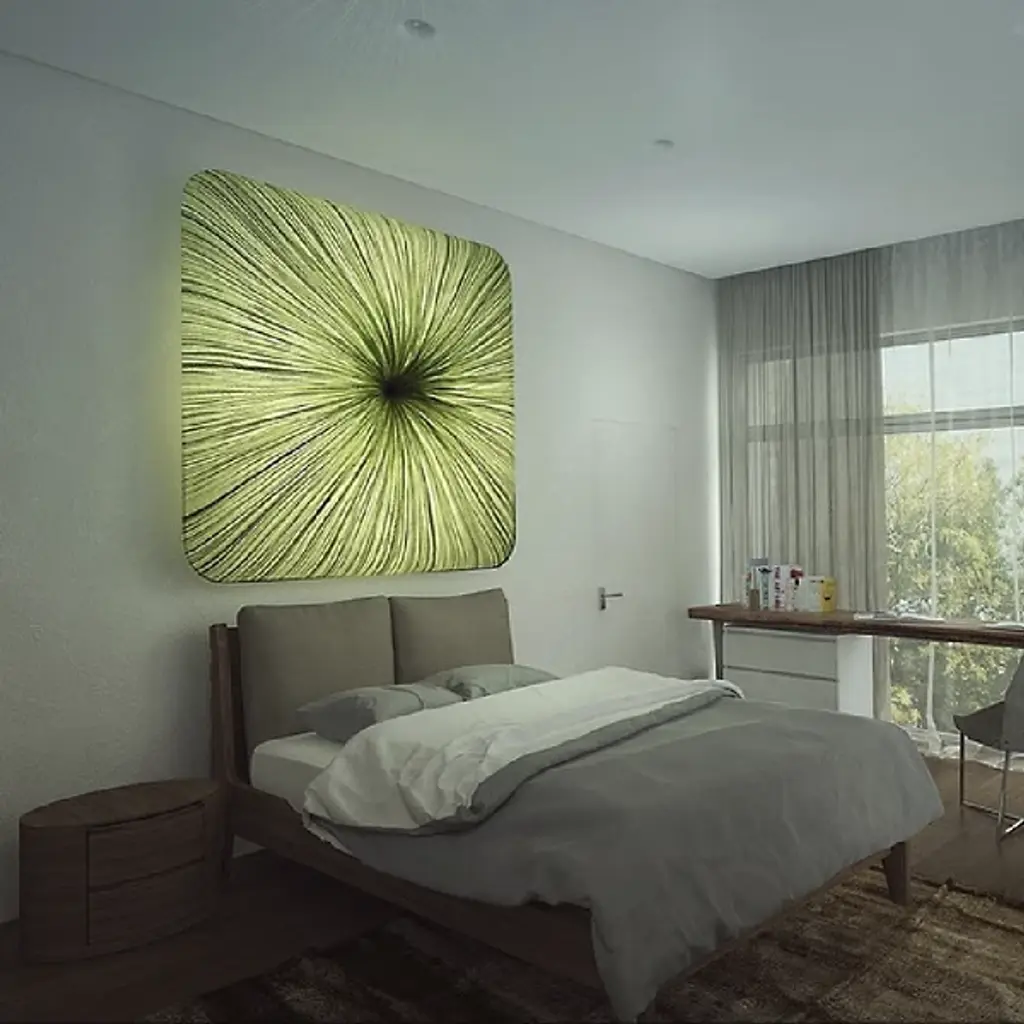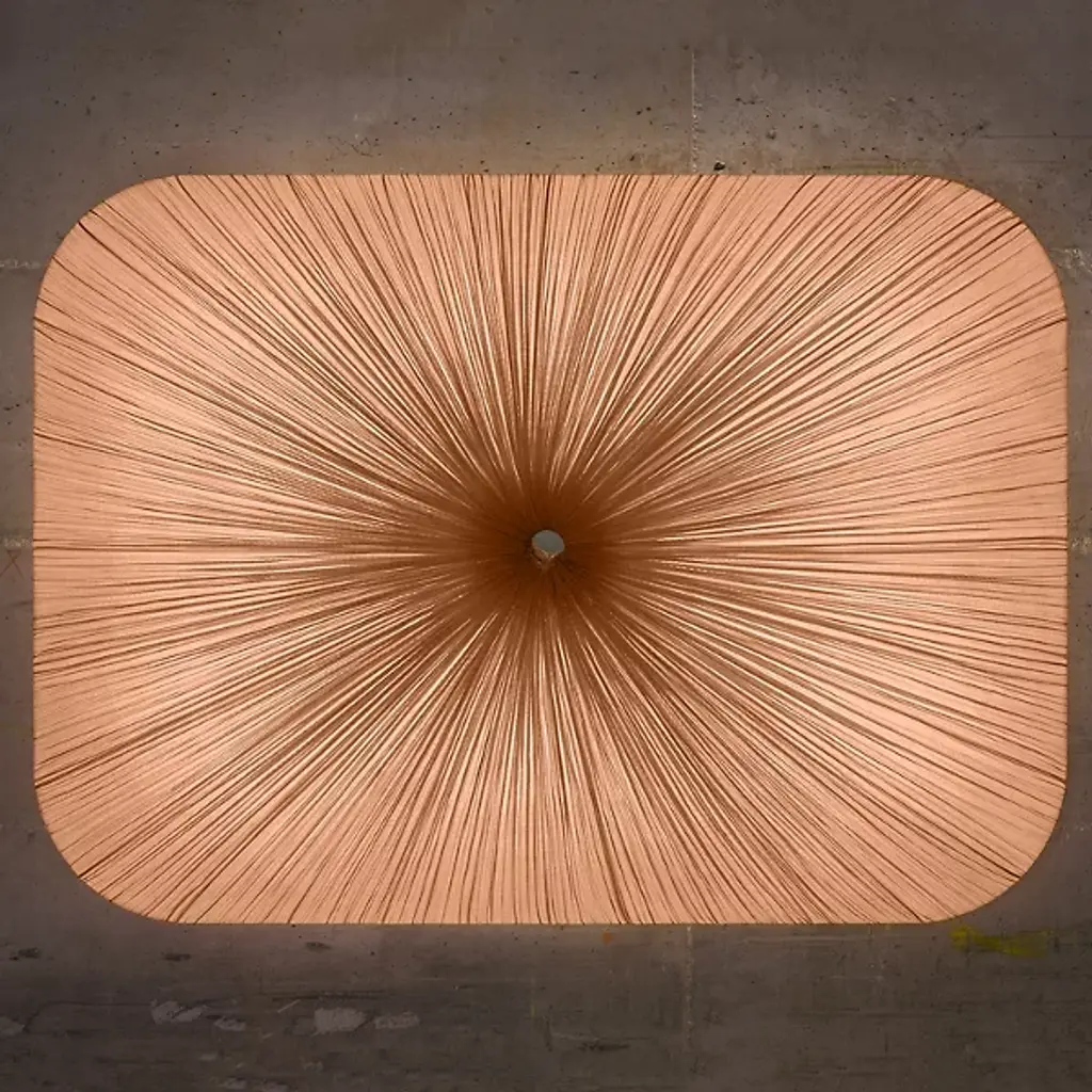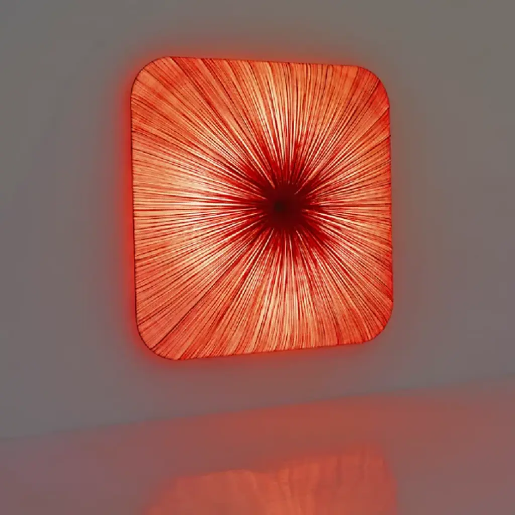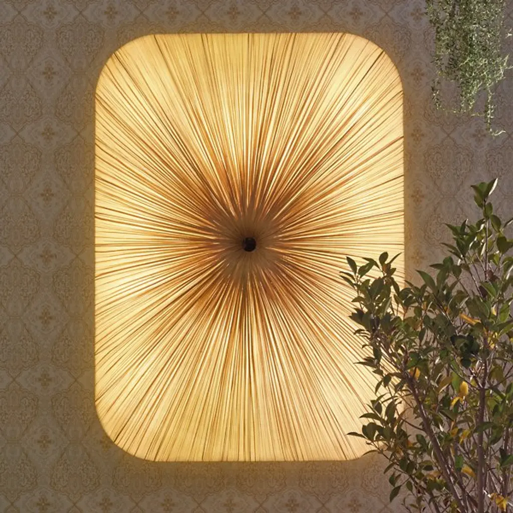 Named and designed after Nara, the ancient Japanese capital. Exhibiting a grid-like pattern reminiscent of the ancient capital city, the Nara Wall / Flushmount by Aqua Creations takes the shape of a rounded square. This luminaire utilizes four power-efficient LED modules and a handcrafted pleated silk shade that evenly diffuses light along its surface. The LED modules are dimmable and allow the user to adjust the light intensity to create the perfect atmosphere in any setting.