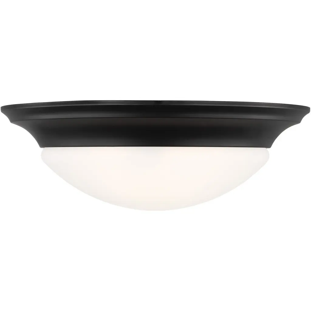 The Nash one light flush mount fixture in midnight black is an ENERGY STAR½ qualified lighting fixture that uses LED bulbs to save you both time and money. The Nash flush mount ceiling fixtures by provide a clean, subtle look with a designer finish. Offered in Chrome, Brushed Nickel, Satin Bronze, White and Heirloom Bronze finishes, the assortment includes one-light, two-light and three-light flush mounts. Installation and bulb changing is easy with a twist and lock glass shade - no screws or glass holders to lose. Incandescent, Integrated LED, and ENERGY STAR-qualified LED lamping are available. All fixtures are Damp Rated and California Title 24 compliant.