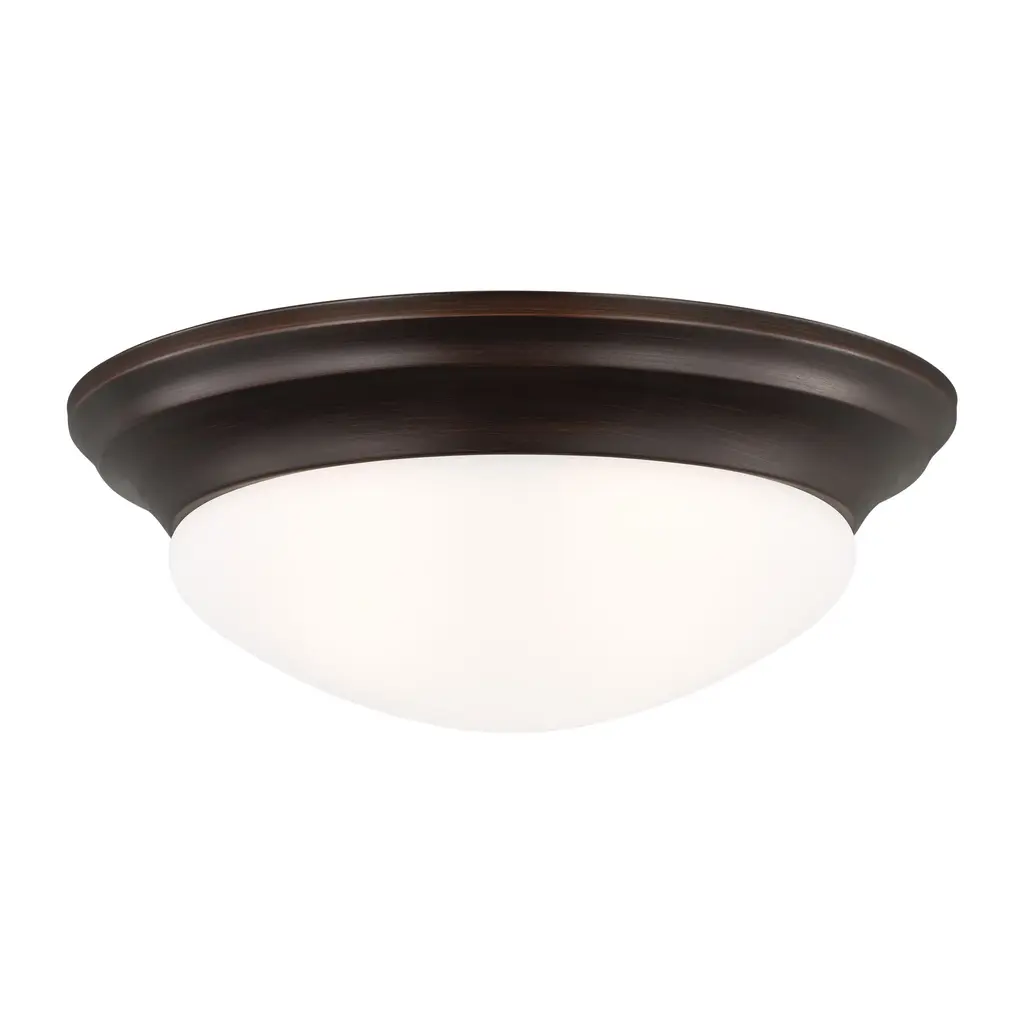 The Nash Ceiling Flush Mount from Generation Lighting is an ideal solution for illuminating any modern living space. Offering classic, timeless vibes, it's simple and subtle silhouette easily blends into a variety of decor styles. Installation and bulb changing is easy with a twist and lock glass shade - no need to worry about losing screws or glass holders. Additionally, lamping choices include Incandescent, Integrated LED or ENERGY STAR-qualified LED bulbs to provide energy efficiency. Highlights LED compatible for a efficient, versatile and durable light source Damp rated for use in bathrooms and covered patios Sleek architectural look with exclusive 'twist-lock' design makes installation and replacing easy with no exposed screws