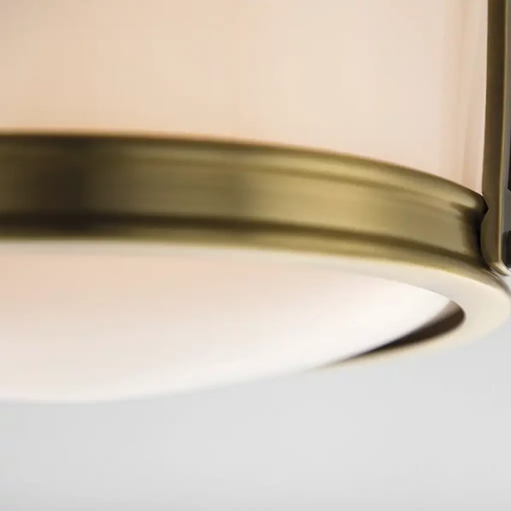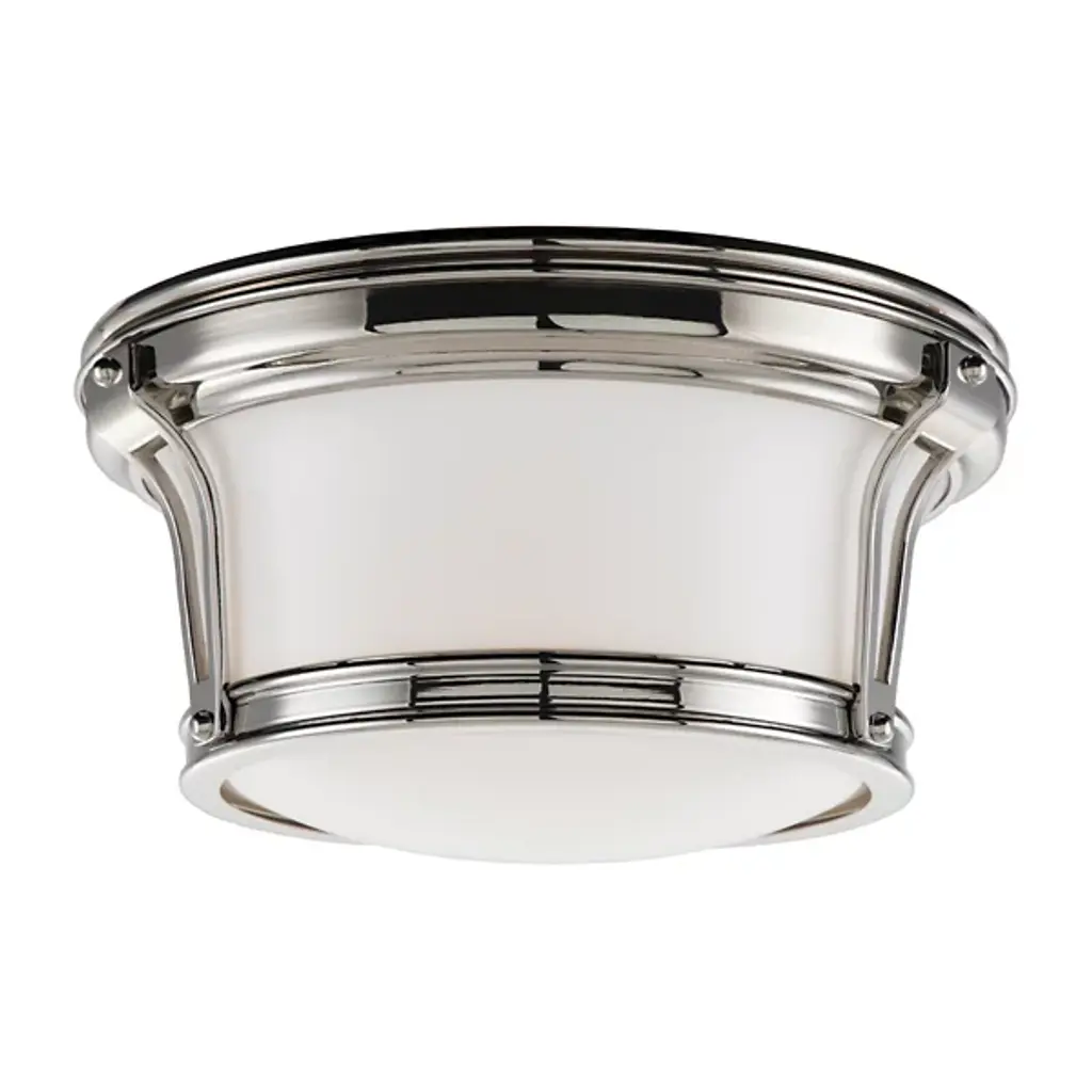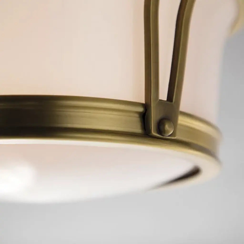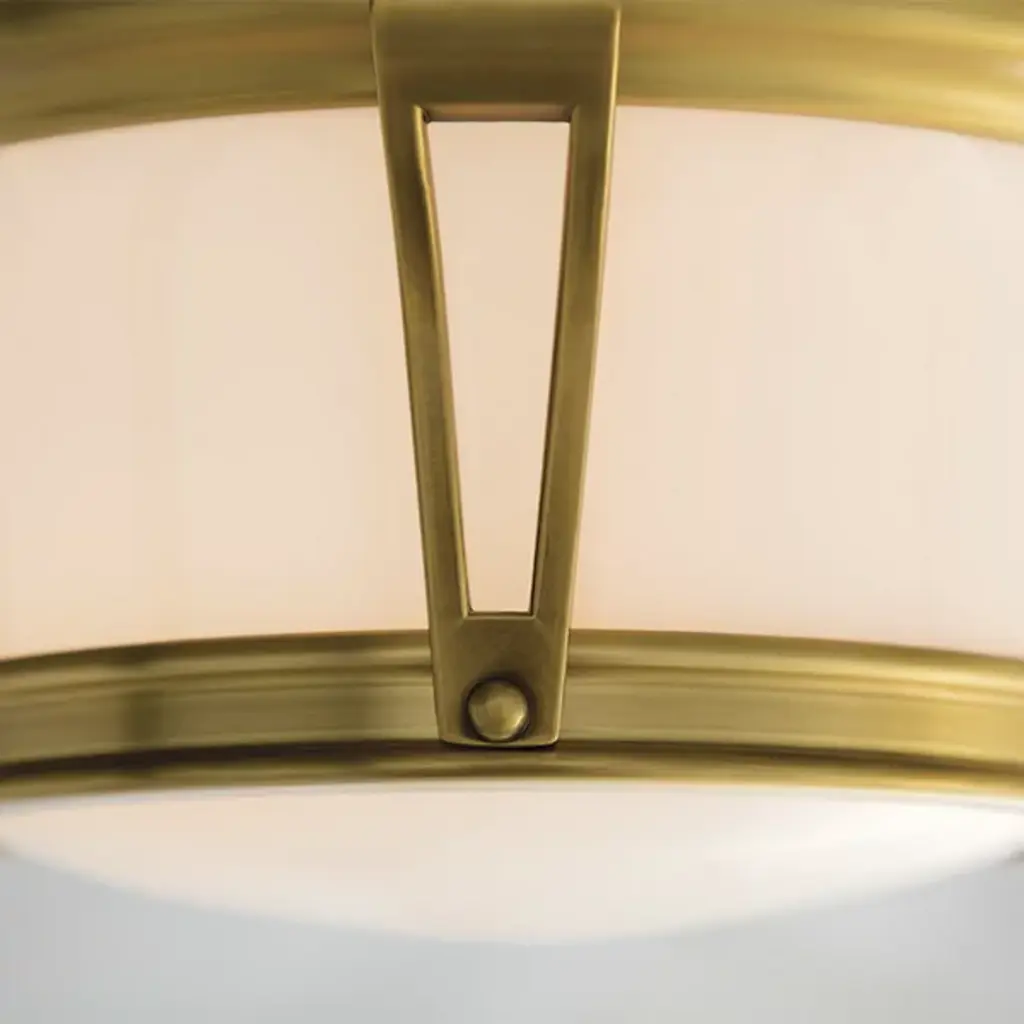 The Hudson Valley Newport Flushmount offers clean lines and excellent diffused lighting for the transitional bedroom or kitchen. Its solid brass supports beautifully accent Opal glass. A simple fixture that has great ability to tie a room together.
