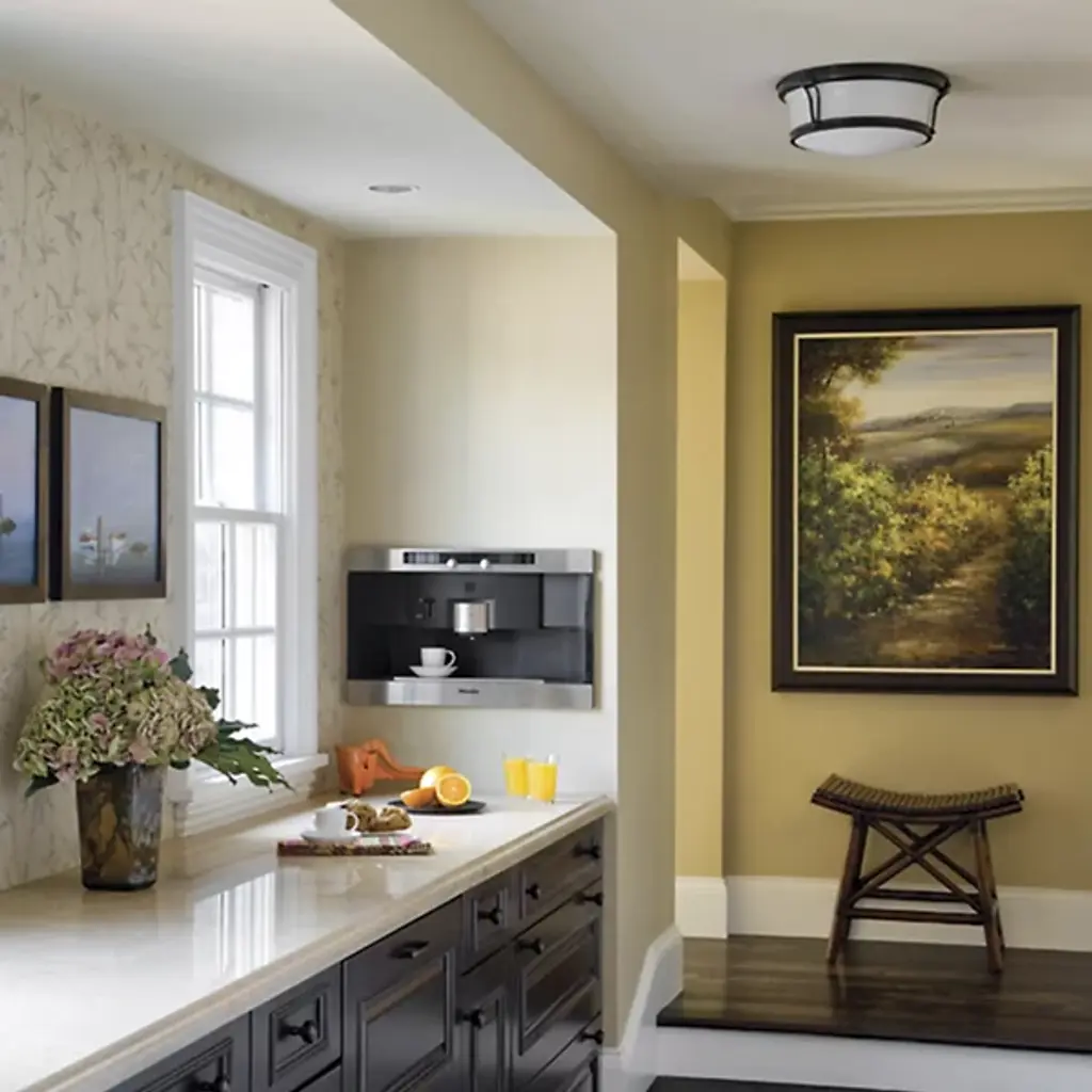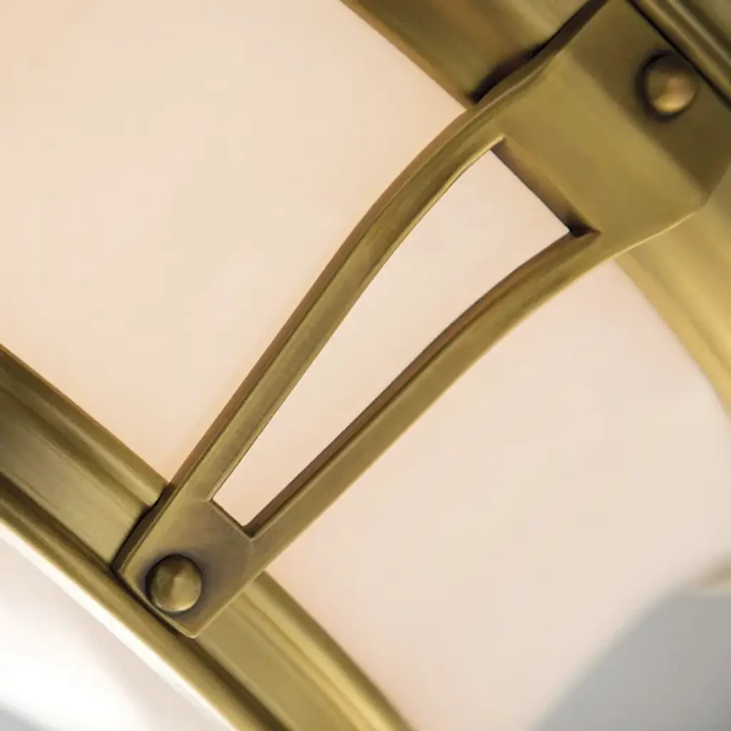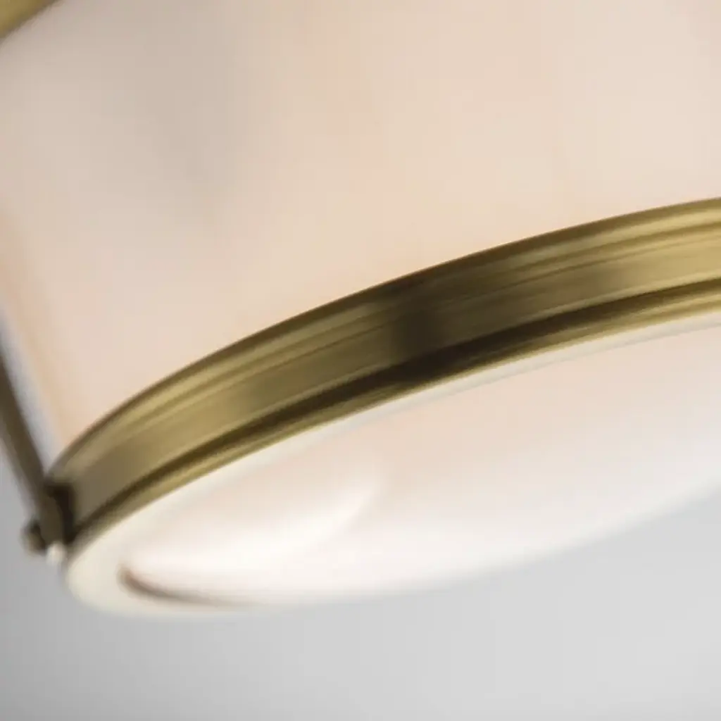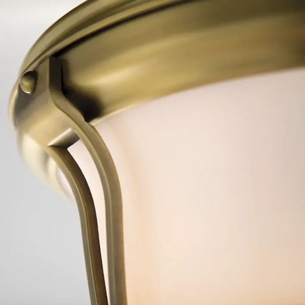 The Hudson Valley Newport Flushmount offers clean lines and excellent diffused lighting for the transitional bedroom or kitchen. Its solid brass supports beautifully accent Opal glass. A simple fixture that has great ability to tie a room together.