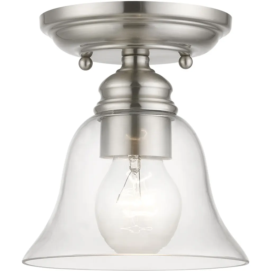 Newton Bell 1 Light 8 Inch Satin Nickel Flush Mount Ceiling Light In Clear Glass