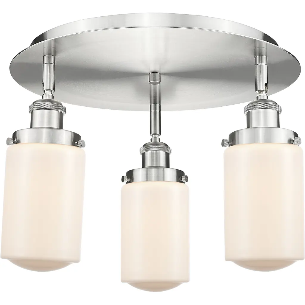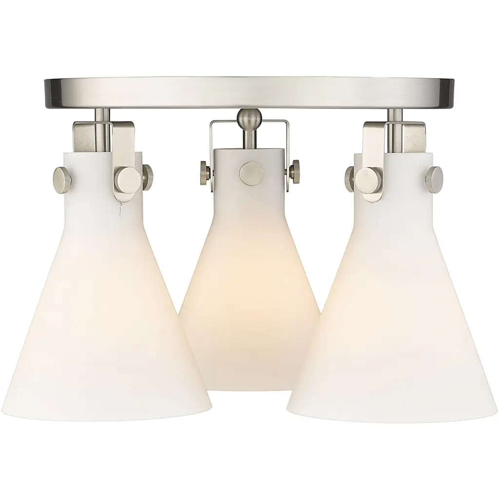 Newton Bell 3 Light 19.63 Inch Satin Nickel Flush Mount Ceiling Light In Matte White Glass