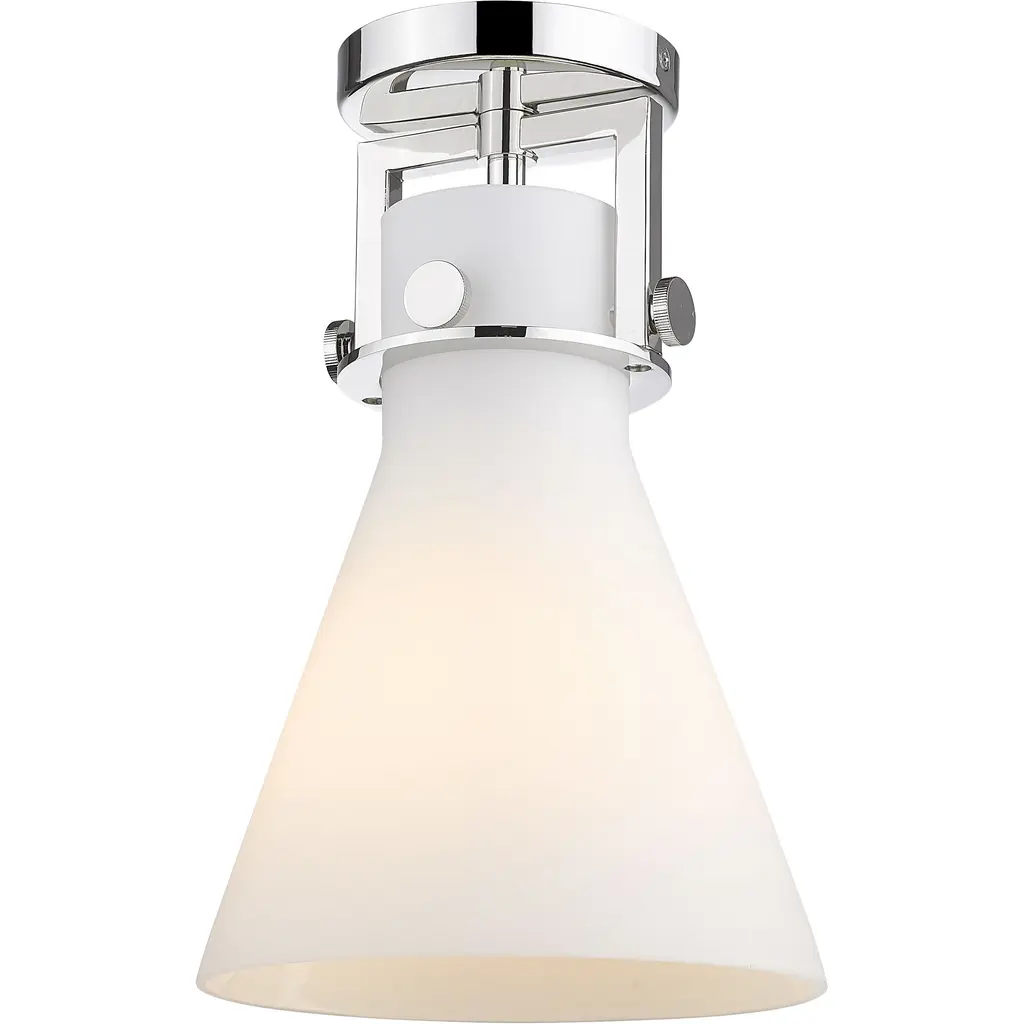 Newton Cone 1 Light 8 Inch Satin Nickel Flush Mount Ceiling Light In Matte White Glass