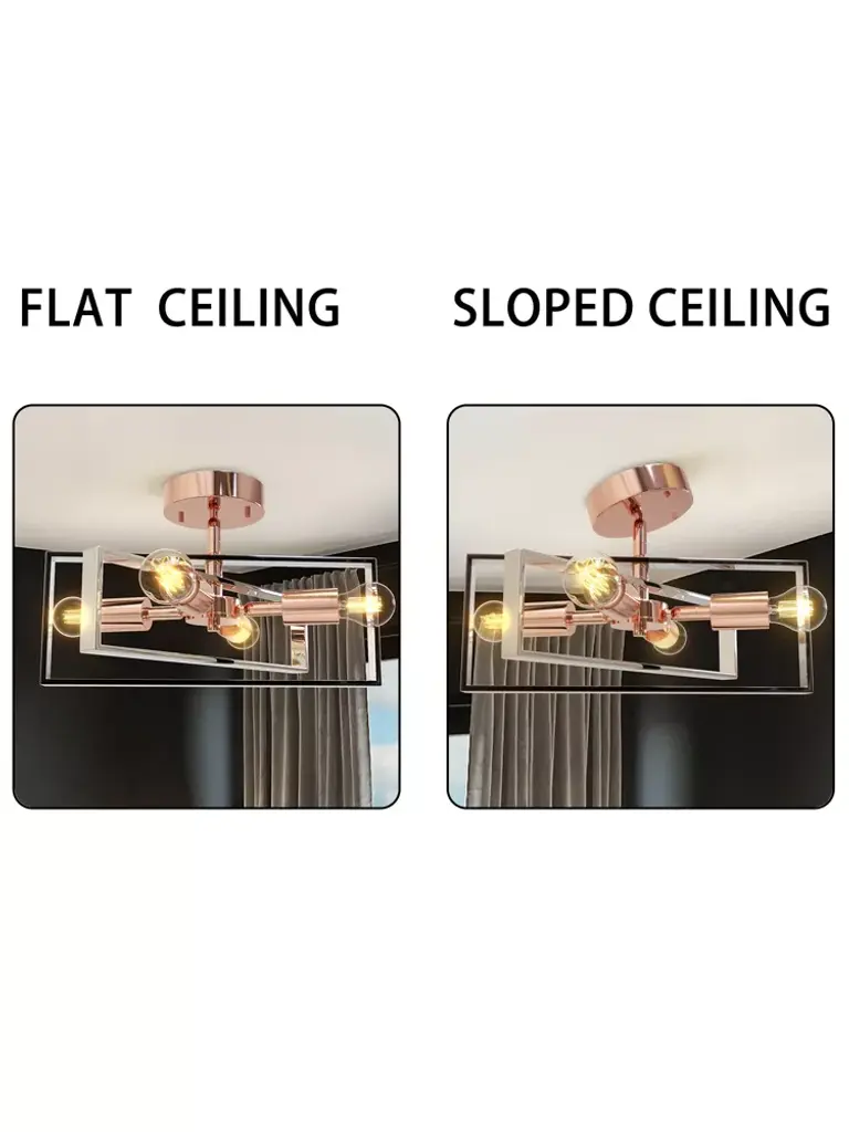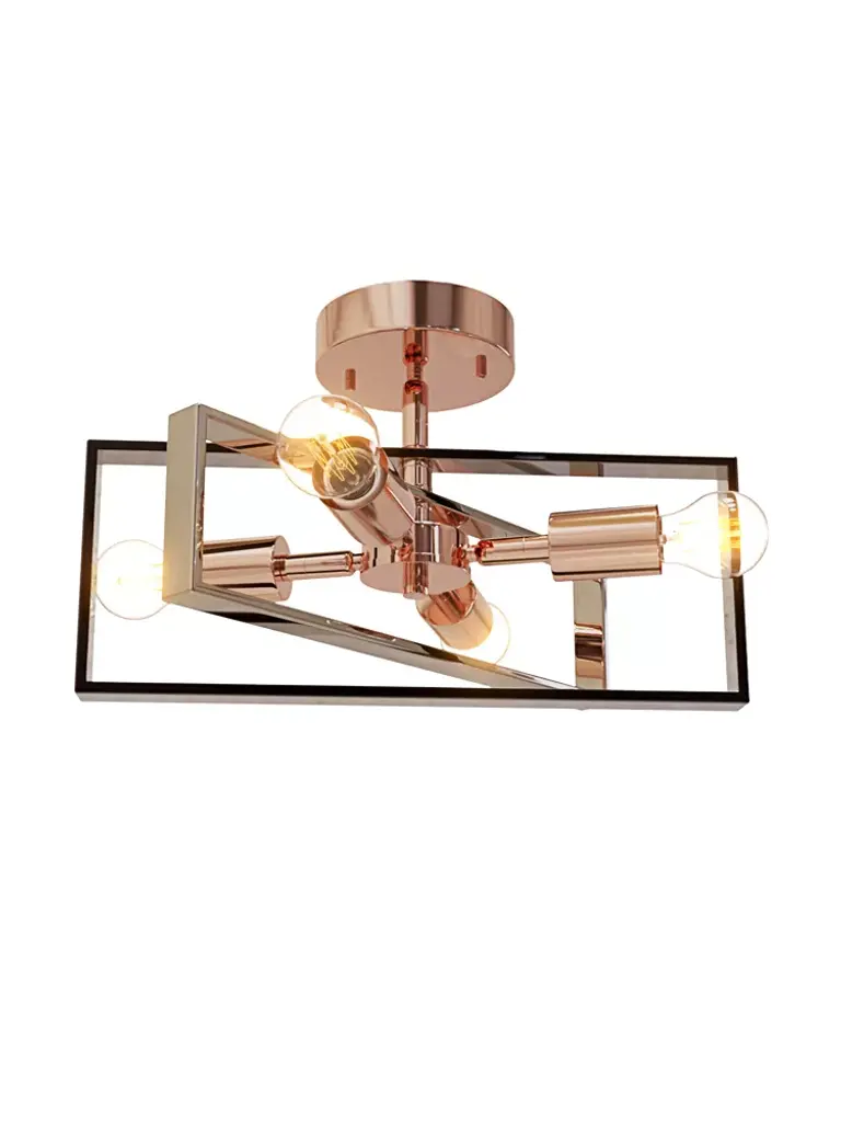 This 15 Inch 4-Light Semi Flush Mount from Nextop has two beautiful, open intersecting rectangle frames resulting in beautiful lighting that will suit any space. The classic black and silver combination and the unique rose gold reflect beautifully under the illumination of the light, resulting in a modern spin on a classic design. This lamp is perfect for any spaces and creates a warm and cozy ambiance, suiting a variety of farmhouse, industrial, modern, rustic, and vintage styles.