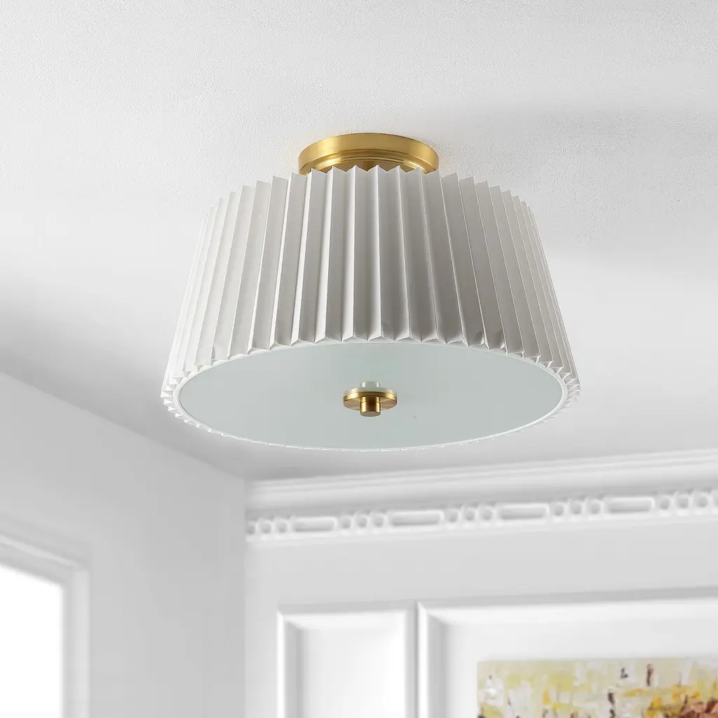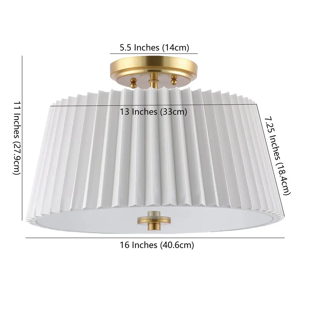 Give your décor a touch of tradition with this Flush Mount. Brass gold accents add a hint of modern glamour to the pleated white fabric shade, making it ideal for the classic-contemporary interior.