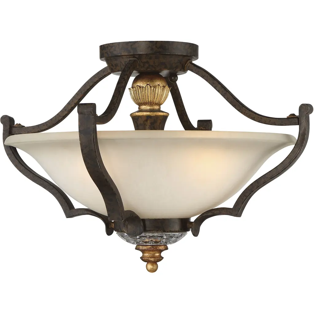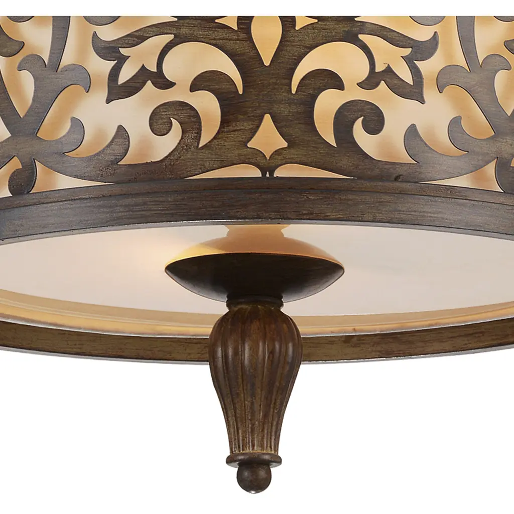 Give your living room, hallway, or bedroom a warm, inviting glow with the Nicole 5-Light Flush Mount. This stylish close-to-ceiling fixture blends rustic charm with timeless design, featuring a scroll-patterned outer frame and a solid drum shade for a balanced, sophisticated look.
