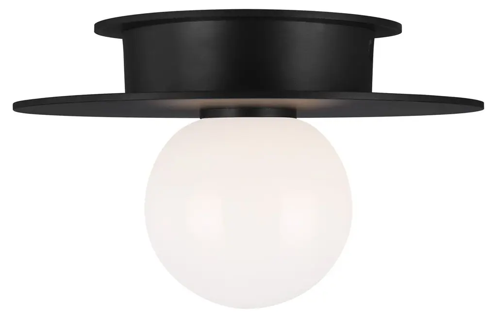Striking with a straightforward air. The Nodes Flushmount from Visual Comfort Studio, formerly known as Kelly by Kelly Wearstler, has a simple look that is nonetheless able to make a dramatic statement in your living room or dining room. It’s formed like a cylinder, ending in a flat and round disk. These elements are made out of durable Steel to give it the endurance to last a long time. The light source is hidden behind a Milk Glass Globe, which will make sure the light gets evenly dispersed around the space.