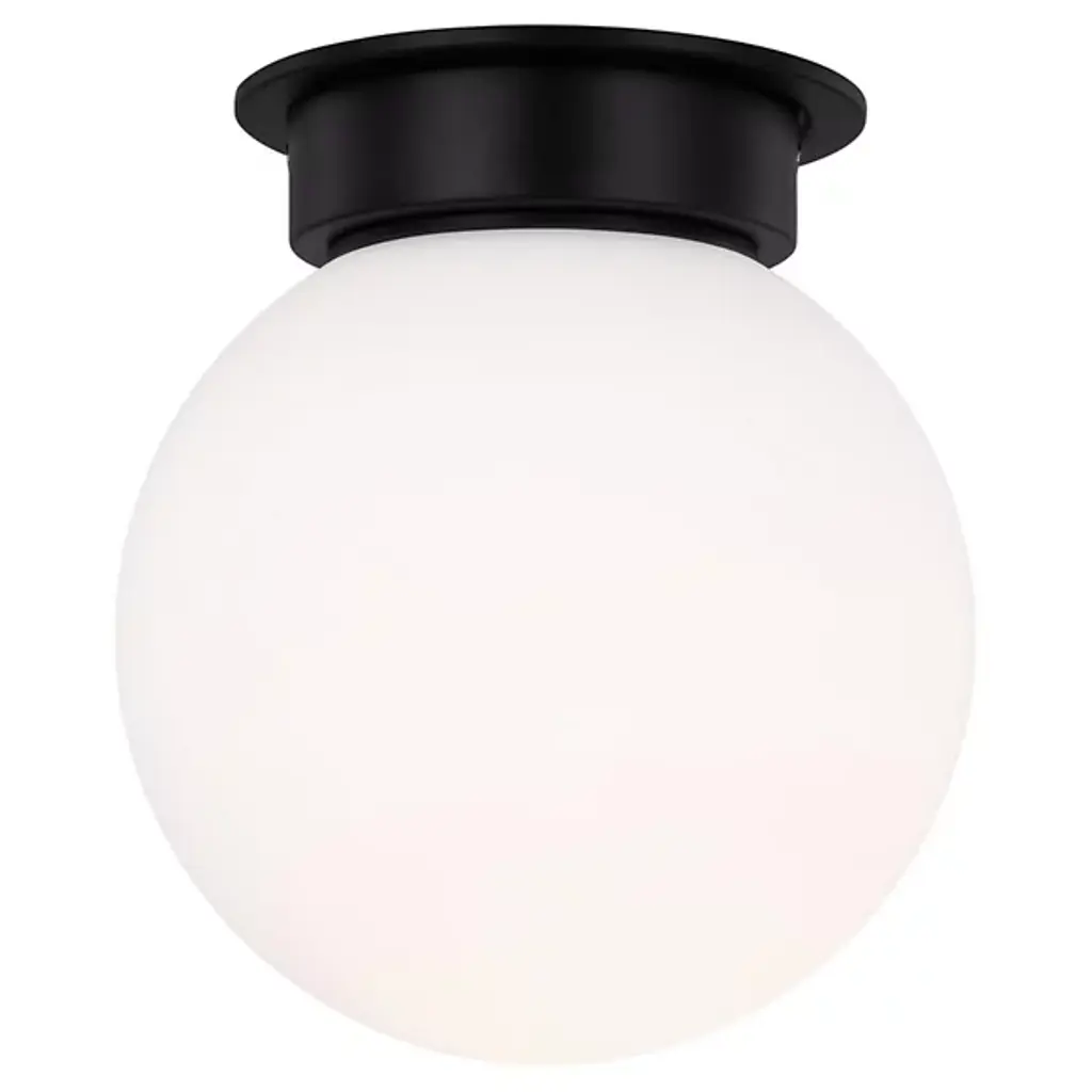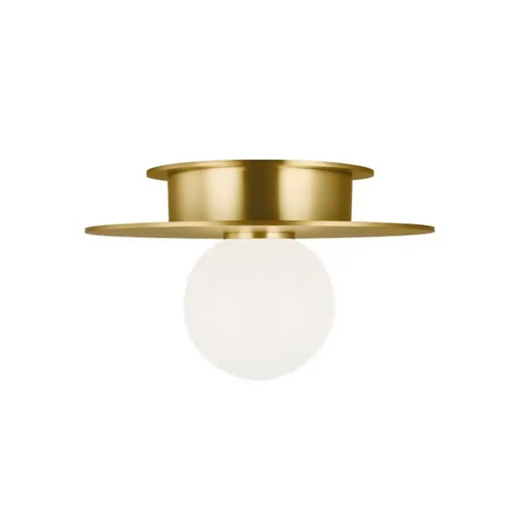 Striking with a straightforward air. The Nodes Flushmount from Visual Comfort Studio, formerly known as Kelly by Kelly Wearstler, has a simple look that is nonetheless able to make a dramatic statement in your living room or dining room. It’s formed like a cylinder, ending in a flat and round disk. These elements are made out of durable Steel to give it the endurance to last a long time. The light source is hidden behind a Milk Glass Globe, which will make sure the light gets evenly dispersed around the space.