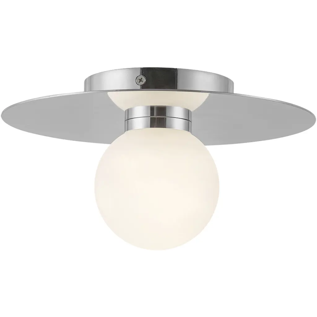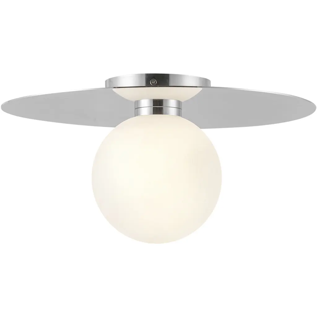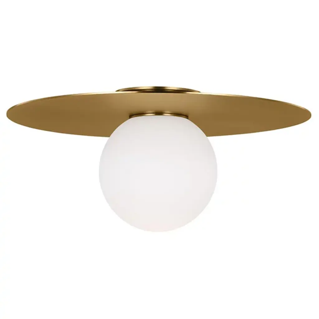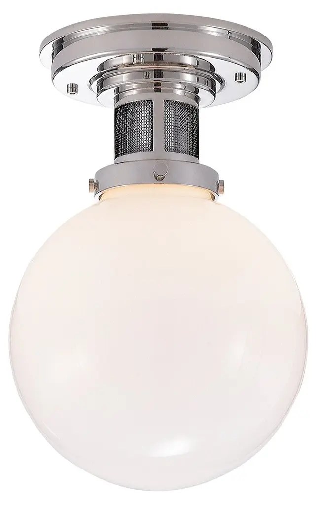 Striking with a straightforward air. The Nodes Flushmount from Visual Comfort Studio, formerly known as Kelly by Kelly Wearstler, has a simple look that is nonetheless able to make a dramatic statement in your living room or dining room. It’s formed like a cylinder, ending in a flat and round disk. These elements are made out of durable Steel to give it the endurance to last a long time. The light source is hidden behind a Milk Glass Globe, which will make sure the light gets evenly dispersed around the space.