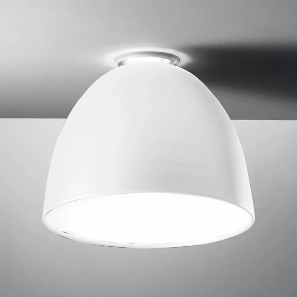Create a modern, sophisticated look in any room with the Nur Gloss Flush Mount from Artemide. This ceiling mounted luminaire is ideal for direct LED, halogen, fluorescent or Standard Bulb lighting and also offers subtle indirect lighting for an even soft glow across the ceiling. The finish of the Nur model is perfectly smooth and polished giving off a classic yet elegant appearance. Its sleek design and simple installation make it the perfect accent piece for those looking to add something special without overpowering their interior decor.Highlights Made in Italy Subtle indirect lighting creating a halo on the ceiling Light distribution: Direct/Indirect Dimmable with 0-10V dimmer (for LED) LED Compatible for energy-efficient lighting