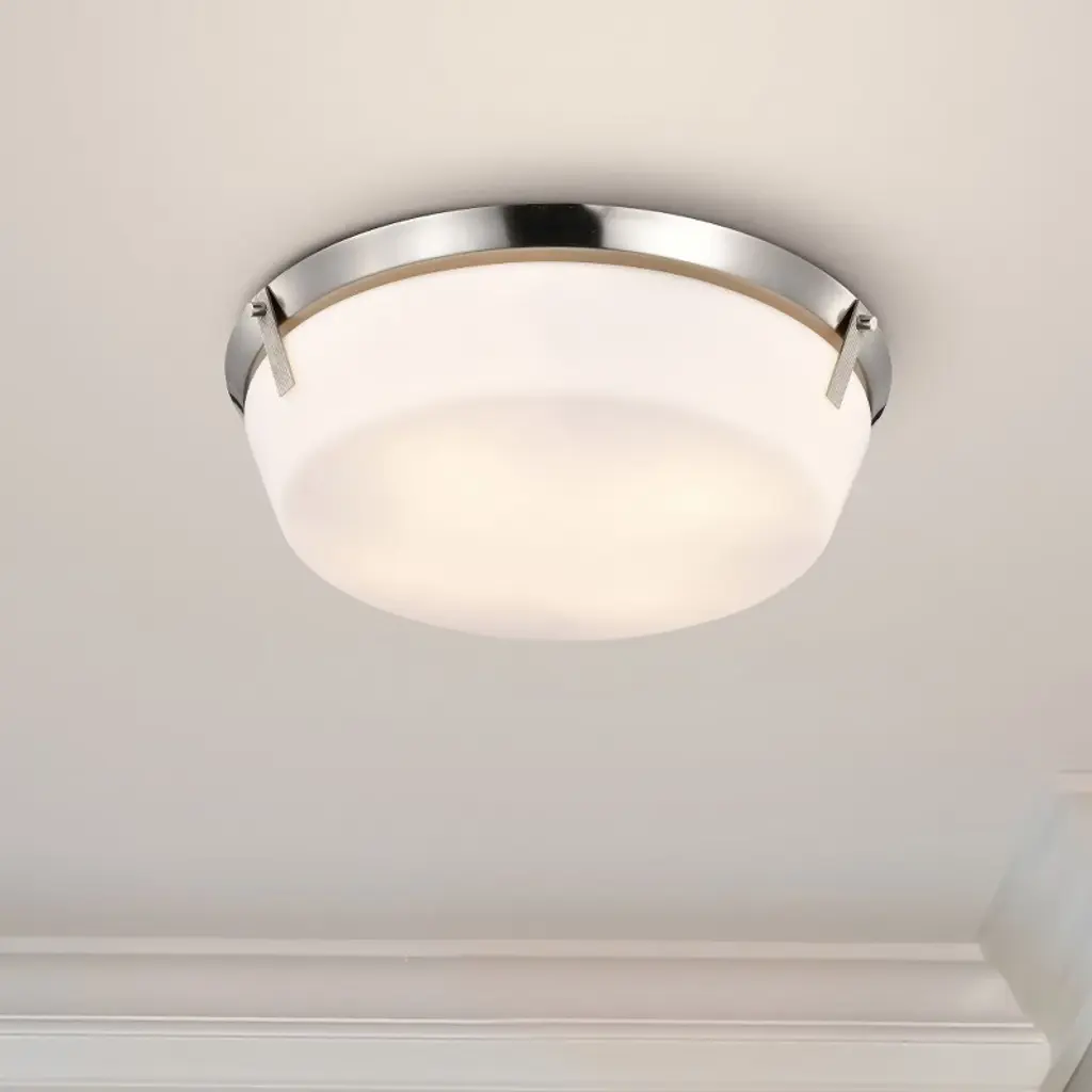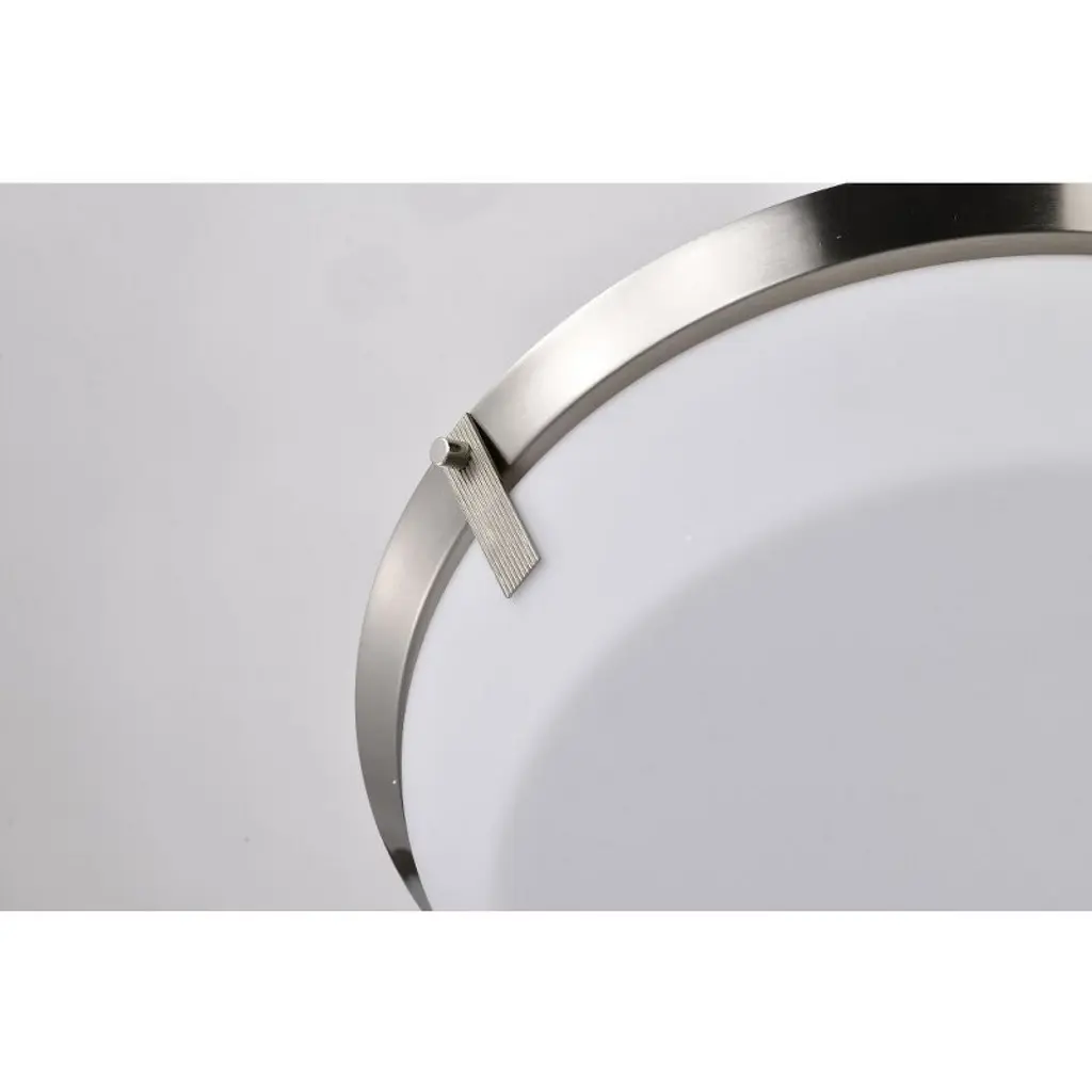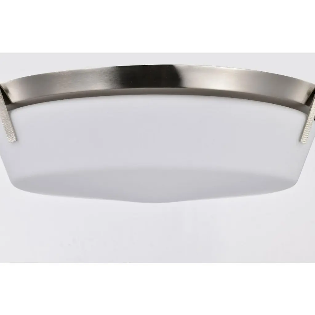 Collection: Rowen, Material: Steel, Finish Color: Brushed Nickel, Width: 18.5", Height: 5", Length: 18.5", Lamping Type: Incandescent, Number Of Bulbs: 4, Wattage: 60 Watts, Dimmable: Yes, Moisture Rating: Damp Rated, Desc: The Rowen 60-7751 flush mount is a versatile lighting fixture that exudes elegance and sophistication. The natural brass finish gives the fixture a warm and inviting look, while the etched white glass diffuses the light to create a soft and ambient glow. Providing ample illumination, makes the Rowen flush mount perfect for larger spaces or areas that require bright lighting. Accepts four 60 watt A19 medium base bulbs or LED equivalent / Steel Construction / Etched White Glass / Natural Brass Finish / Damp Location Rated / 1 Year Warranty / Instructions and mounting hardware included for easy installation / Experience the perfect blend of style and functionality with the Rowen collection, tailored to suit your unique taste and elevate your living spaces.. ,