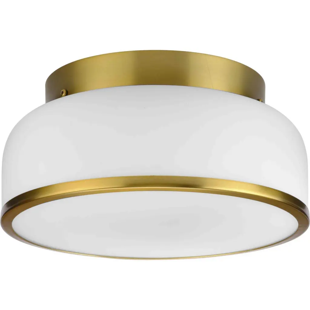 Collection: Rowen, Material: Steel, Finish Color: Natural Brass, Width: 18.5", Height: 5", Length: 18.5", Lamping Type: Incandescent, Number Of Bulbs: 4, Wattage: 60 Watts, Dimmable: Yes, Moisture Rating: Damp Rated, Desc: The Rowen 60-7751 flush mount is a versatile lighting fixture that exudes elegance and sophistication. The natural brass finish gives the fixture a warm and inviting look, while the etched white glass diffuses the light to create a soft and ambient glow. Providing ample illumination, makes the Rowen flush mount perfect for larger spaces or areas that require bright lighting. Accepts four 60 watt A19 medium base bulbs or LED equivalent / Steel Construction / Etched White Glass / Natural Brass Finish / Damp Location Rated / 1 Year Warranty / Instructions and mounting hardware included for easy installation / Experience the perfect blend of style and functionality with the Rowen collection, tailored to suit your unique taste and elevate your living spaces.. ,