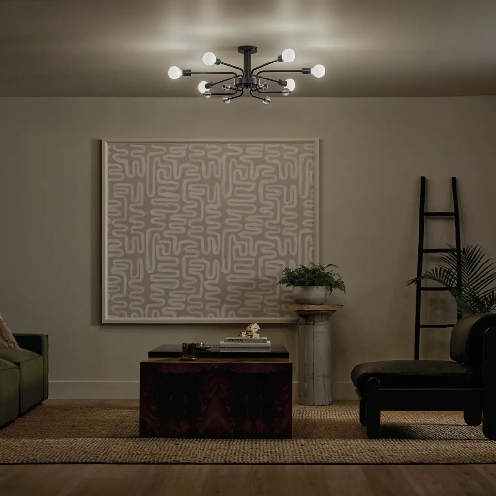 Ocala 41.25 Inch 6 Light Flush Mount with Clear Crystal in Black