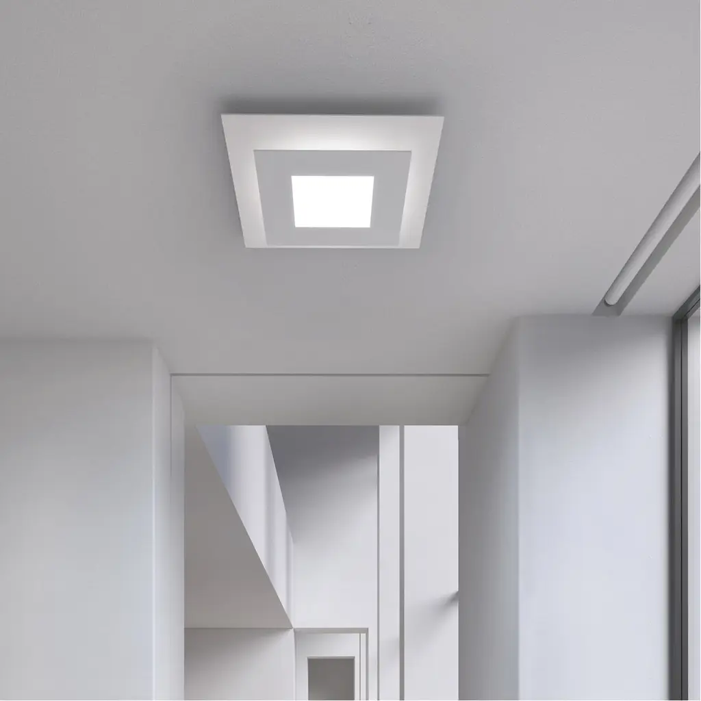 Two plates, held in tandem - their unified geometry combines ambient illumination with a powerful downlight.