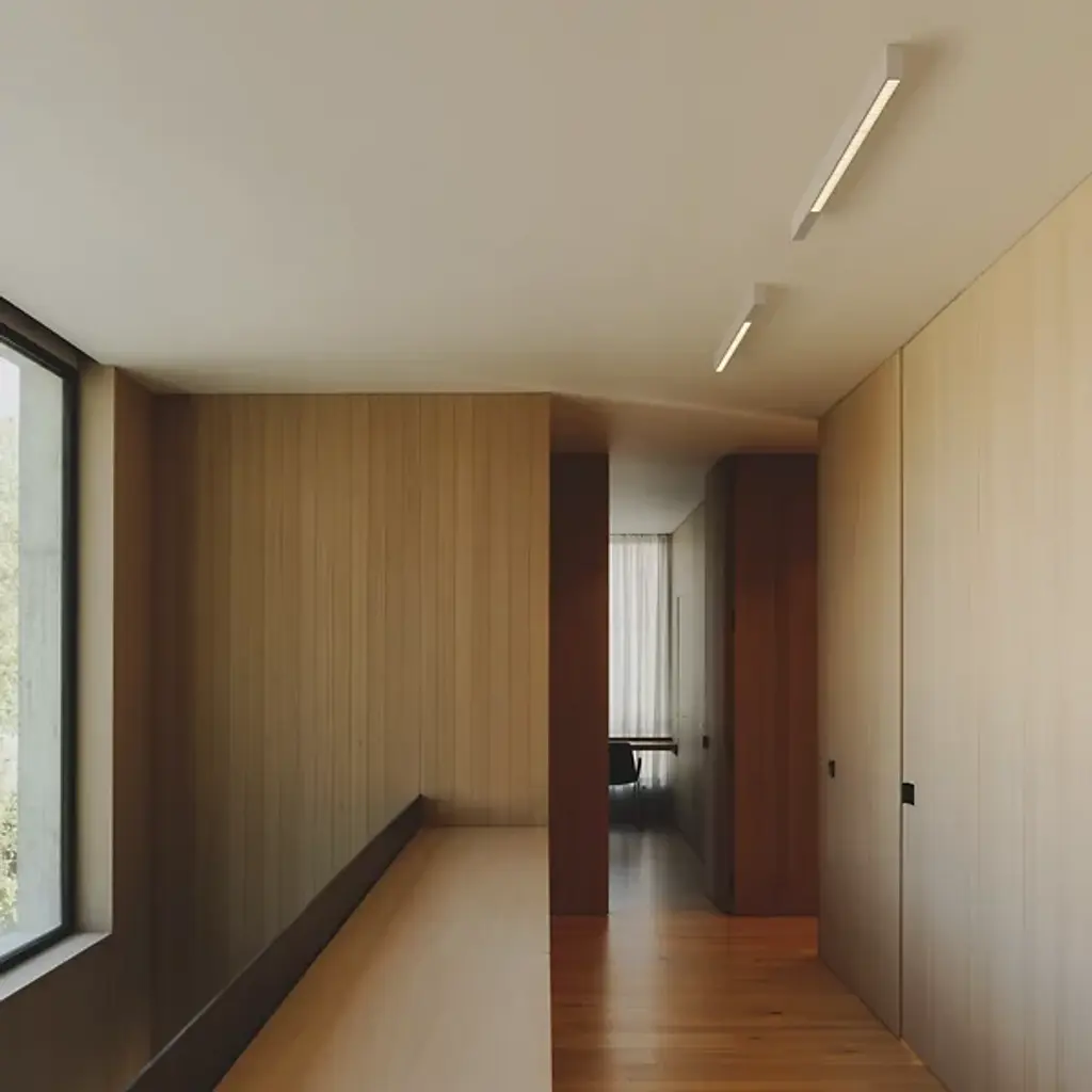 The Offset LED Flushmount from Vibia introduces a bold architectural element with its rectangular housing extending across the ceiling. Designed by Xucla, who is known for a structural and minimalist approach to lighting, this Spanish-made fixture combines geometric precision with soft, indirect illumination. The flushmount adds a refined touch to contemporary interiors with its clean lines and understated design, while an inset glass diffuser gently disperses light from wet-listed LED lamping, creating a warm, inviting glow.