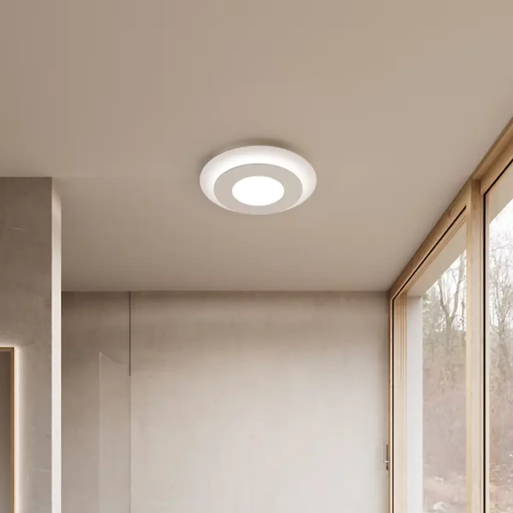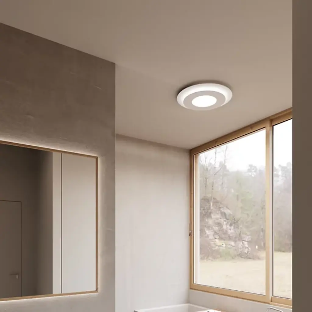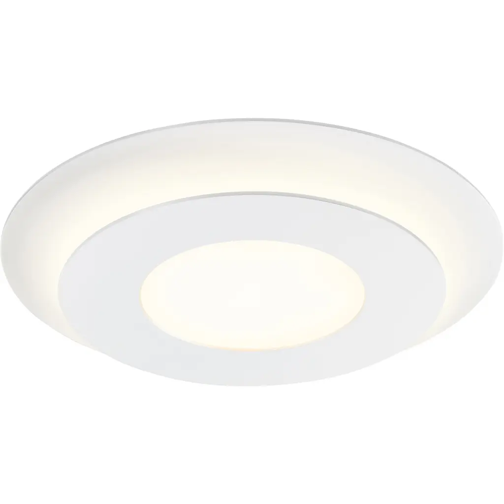 Showcasing two plates held in tandem to one another, the SONNEMAN Lighting Offset Round LED Flushmount combines lovely ambiance with potent downlighting. Made from metal and powered with an LED light source, the Offset features a geometrically unified profile that casts an ample spectrum of light from above while diffusing an ambient halo of light through its sides. Delivers 2700 lumens and dims with an ELV or TRIAC dimmer.