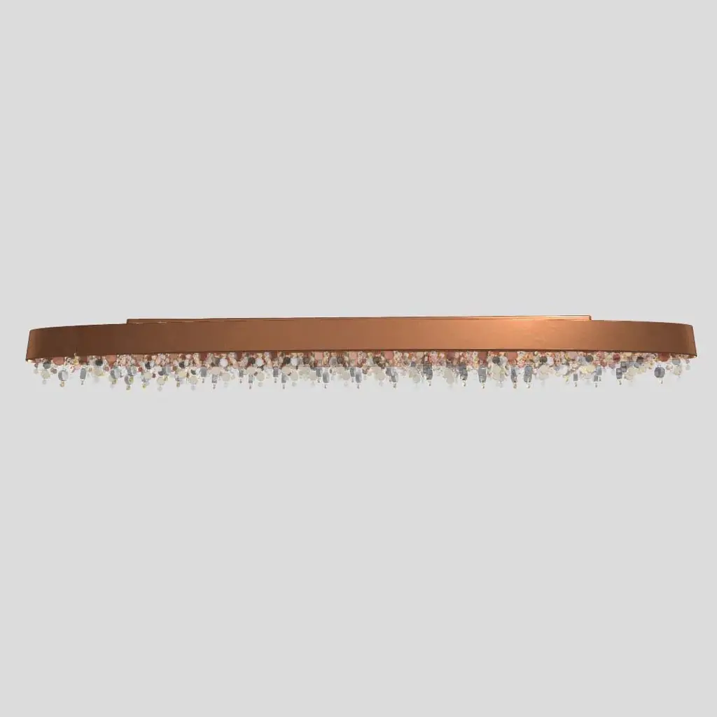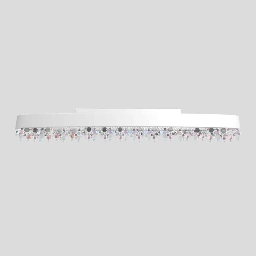 Illuminate your space with luxury and sophistication with the Ola Oval Flush Mount from Masiero. This extravagant light fixture boasts stunning use of color and opulent glass details, enhanced by a powder-coated metal frame. The diffused, ambient light adds a touch of glamour to any room, making it perfect for hallways, bedrooms, dining rooms, and living spaces. Elevate your décor with this exclusive and tasteful ceiling light. Highlights