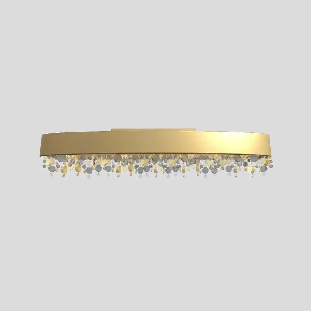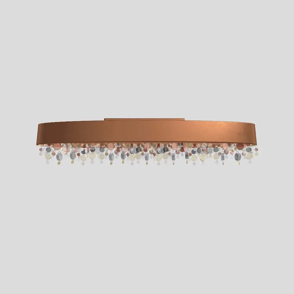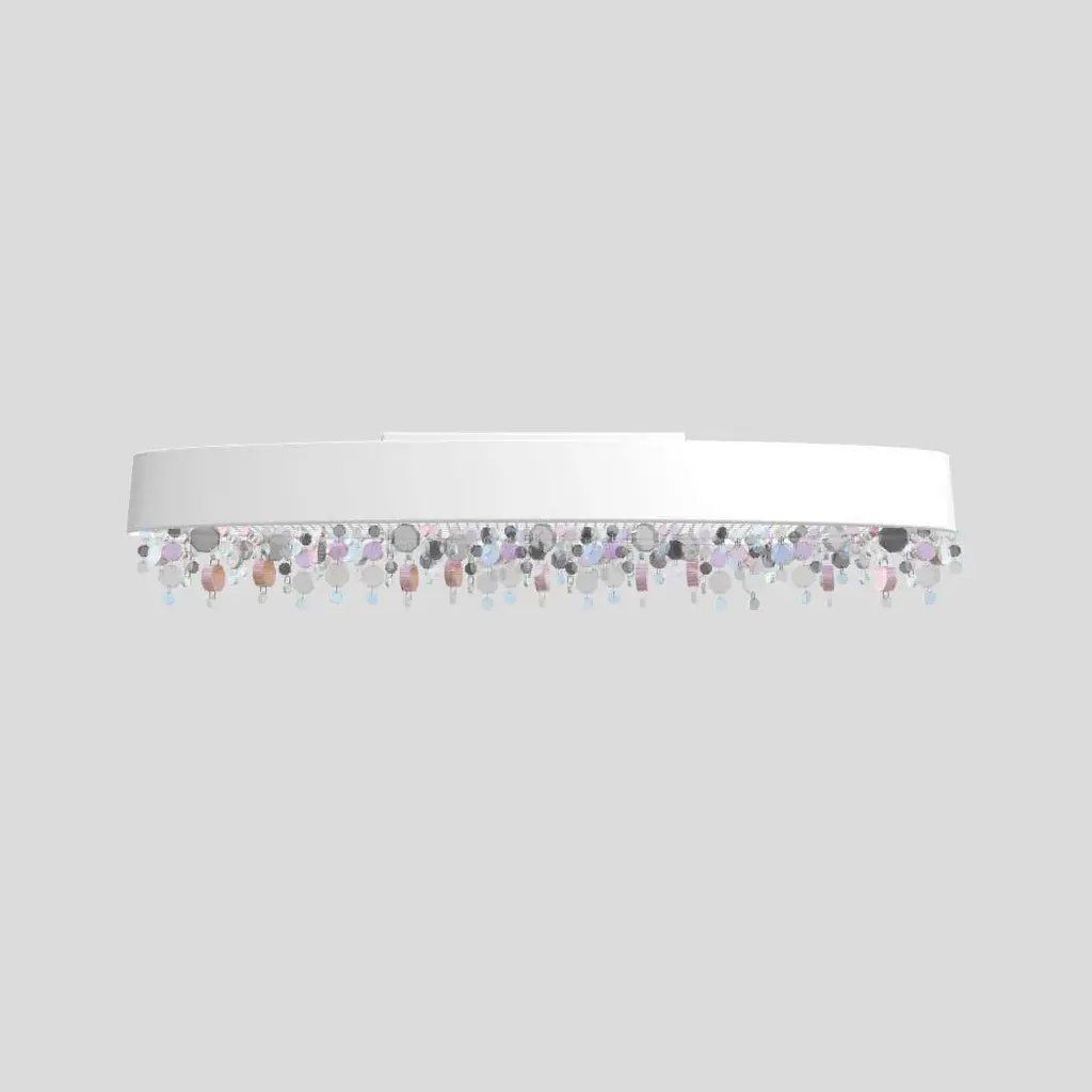 Illuminate your space with luxury and sophistication with the Ola Oval Flush Mount from Masiero. This extravagant light fixture boasts stunning use of color and opulent glass details, enhanced by a powder-coated metal frame. The diffused, ambient light adds a touch of glamour to any room, making it perfect for hallways, bedrooms, dining rooms, and living spaces. Elevate your décor with this exclusive and tasteful ceiling light. Highlights