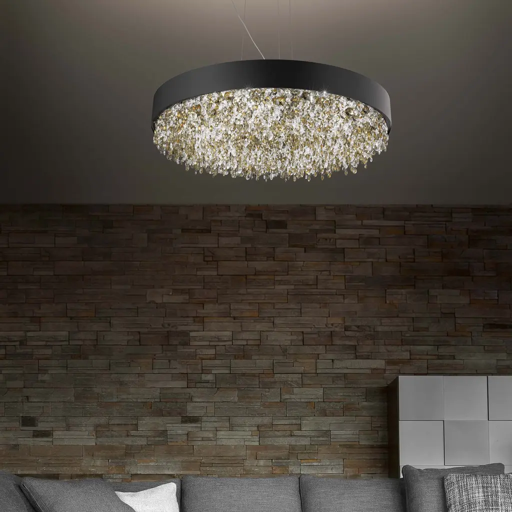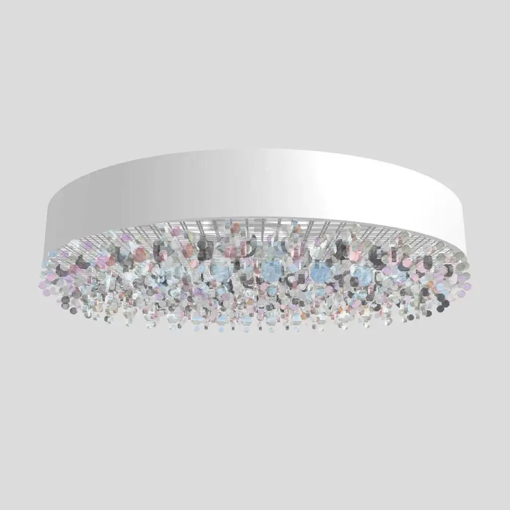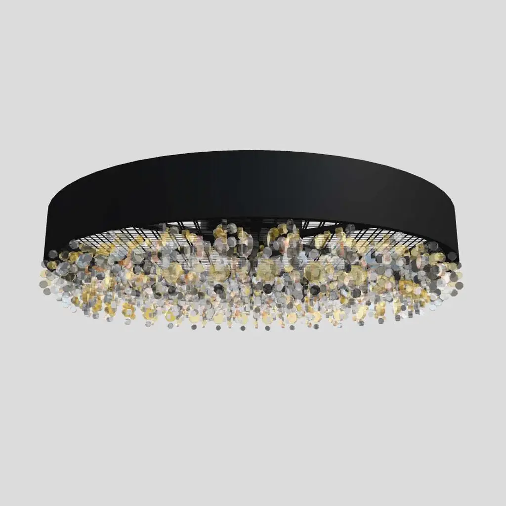 The Ola Round Flush Mount from Masiero is a luxurious and opulent light fixture that will elevate any space. Made from metal with a powder-coated finish, it features stunning Italian-glass accents that add a touch of elegance. When lit, this modern ceiling light casts a soft, ambient glow, making it perfect for any room of your home. Highlights