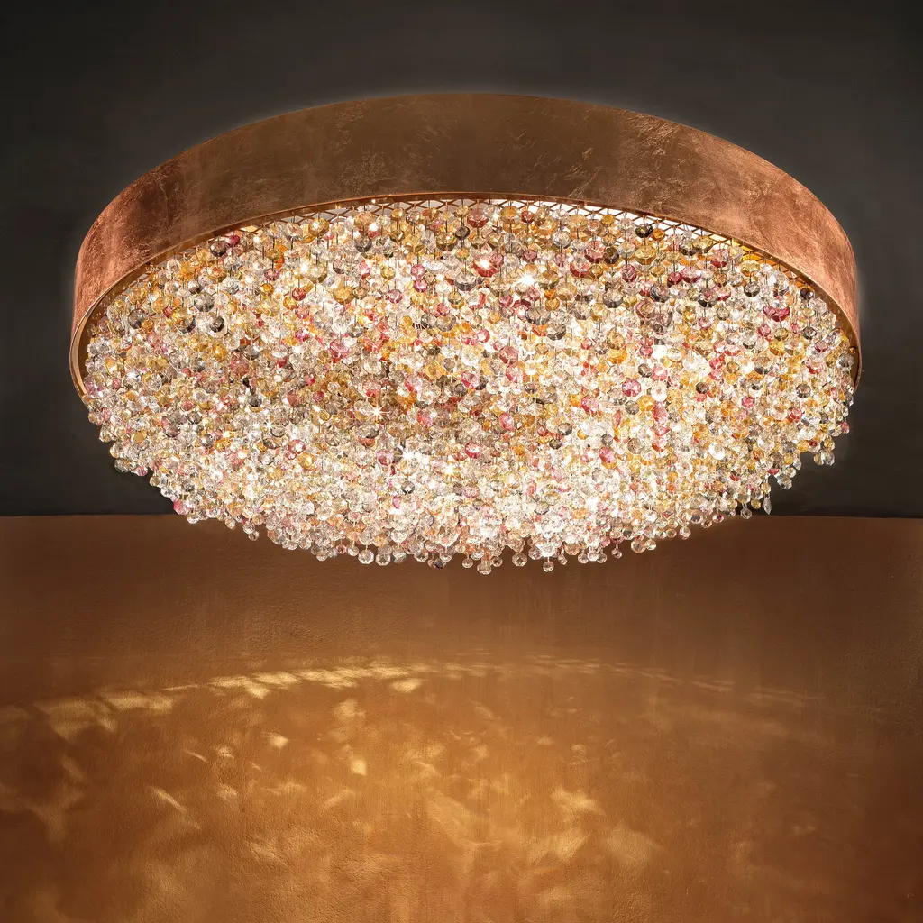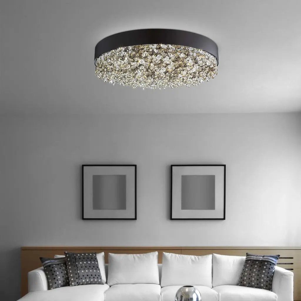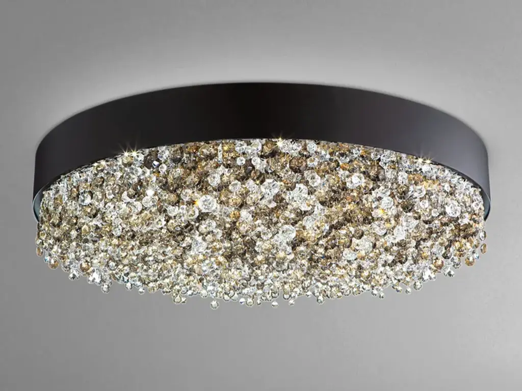 The Ola Round Flush Mount from Masiero is a luxurious and opulent light fixture that will elevate any space. Made from metal with a powder-coated finish, it features stunning Italian-glass accents that add a touch of elegance. When lit, this modern ceiling light casts a soft, ambient glow, making it perfect for any room of your home. Highlights