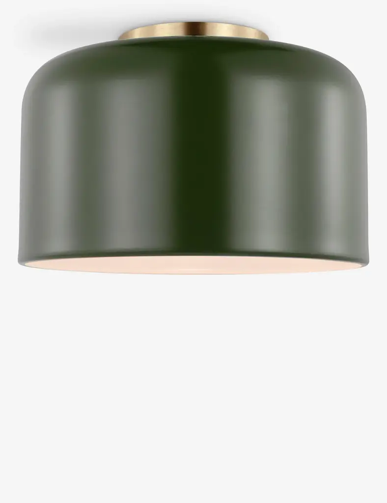 Modern lighting instantly transforms a roomand the sleek simplicity of this flush mount light is set for impact. Its minimalist design features a steel dome shade in a striking finish with touches of brass for added polish. The low profile of this overhead fixture is perfect for bringing elevated lighting to a lower ceiling while augmenting the space.
