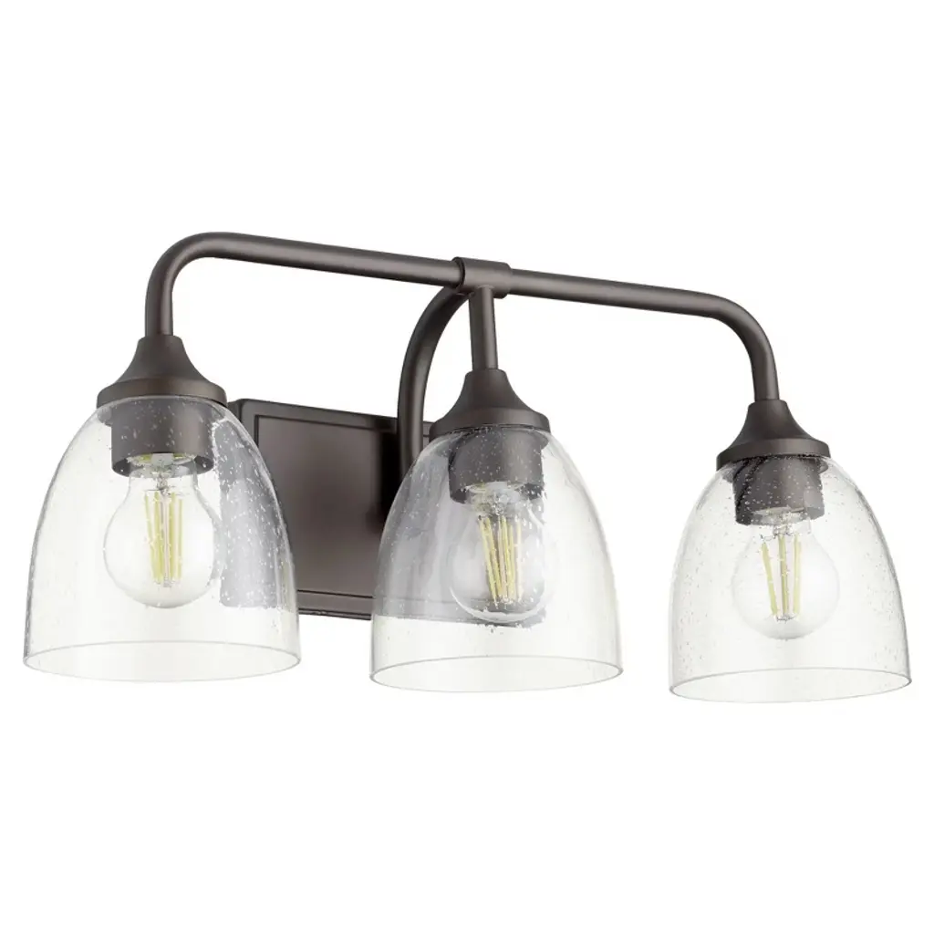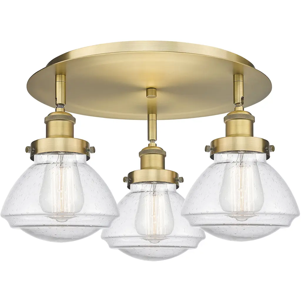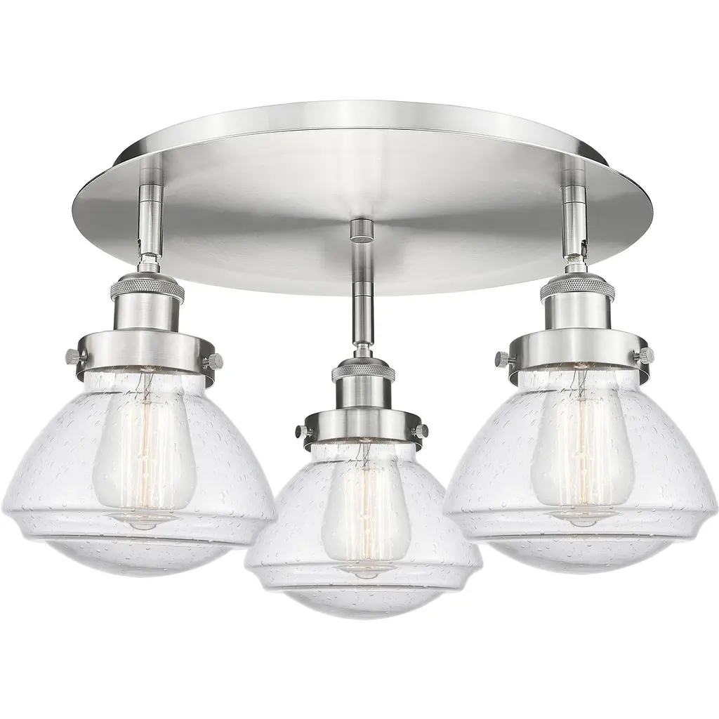 Olean - 3 Light 18" Flush Mount - Matte Black Finish - Seedy Glass Shade