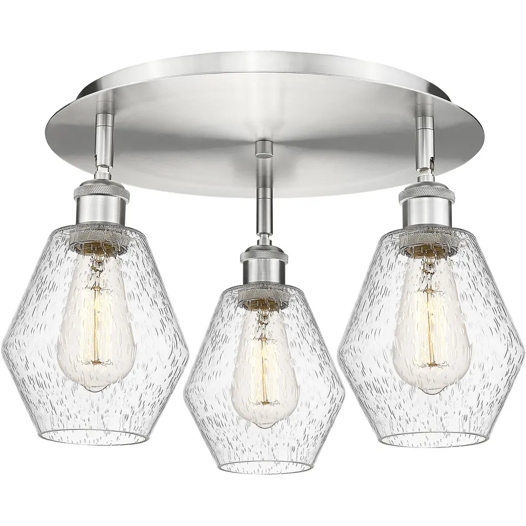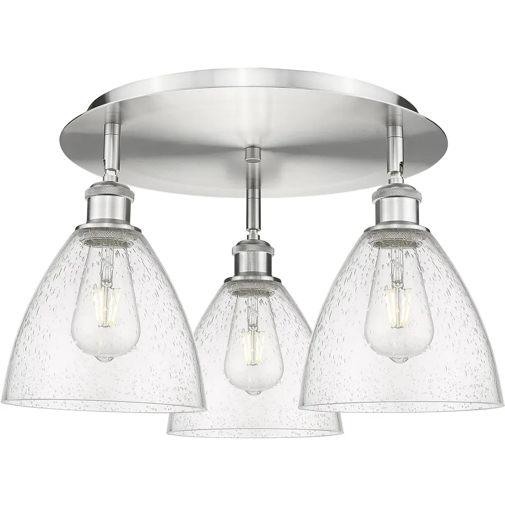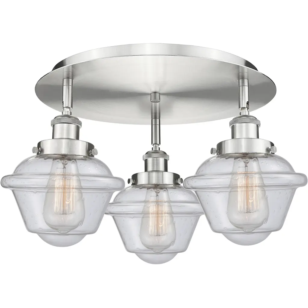 Olean 3 Light 18.25 Inch Satin Nickel Flush Mount Ceiling Light In Seedy
