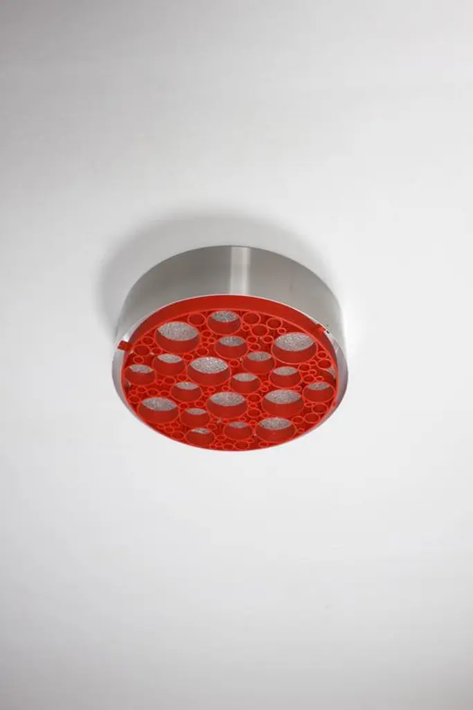 Alliance Flush Mounts by RAAK Amsterdam in very good condition.New old stock!Eight Items availableThe largest version in the Alliance series.The lamp consists of a anodized aluminum housing and an insert with a rhythm of bright orange rings.The orange insert holds a lens of textured glass.Two light sockets for bulbs up to 75 WattThe Amsterdam RAAK lamp factory was founded in the mid 50s by Carel Lock Horn. He was a former Philips employee. The RAAK Amsterdam company was one of the most famous lamp manufacturers in the Netherlands. If you have any questions, please feel free to contact us. In the style of: Sarfatti, Stilnovo.
