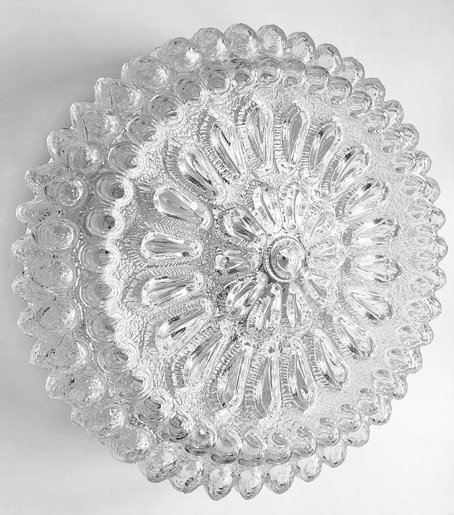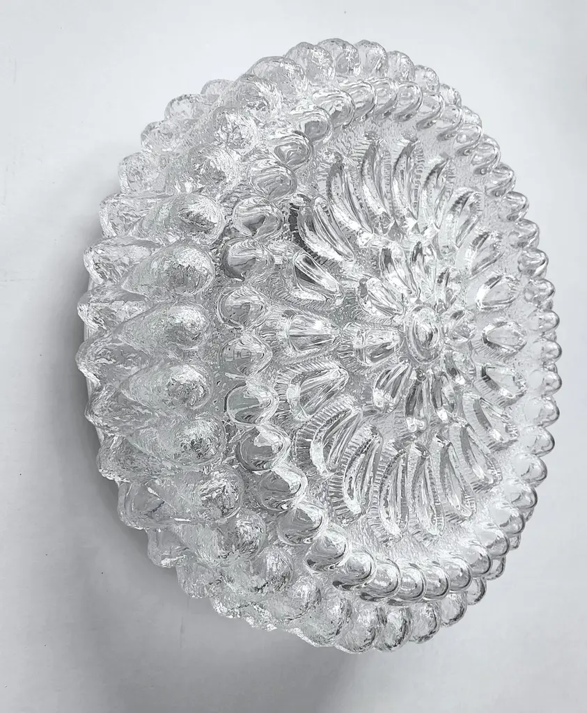 ONE of 2 Lovely large clear white crystal blown glass flushmount,Germany, 1960s.Lamp sockets: 2 E27 (US E26)