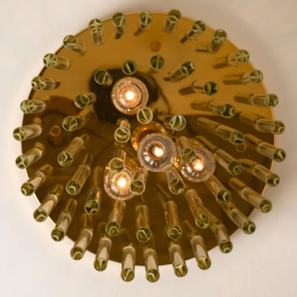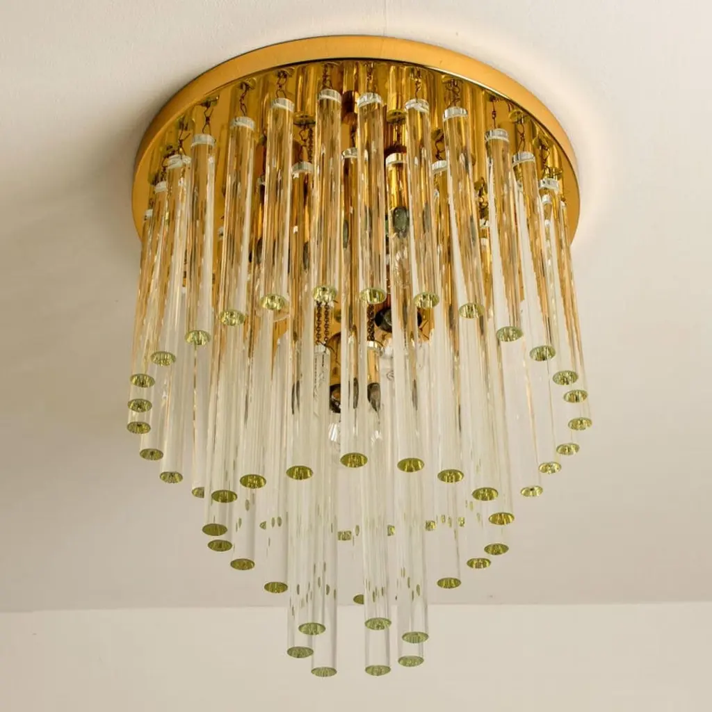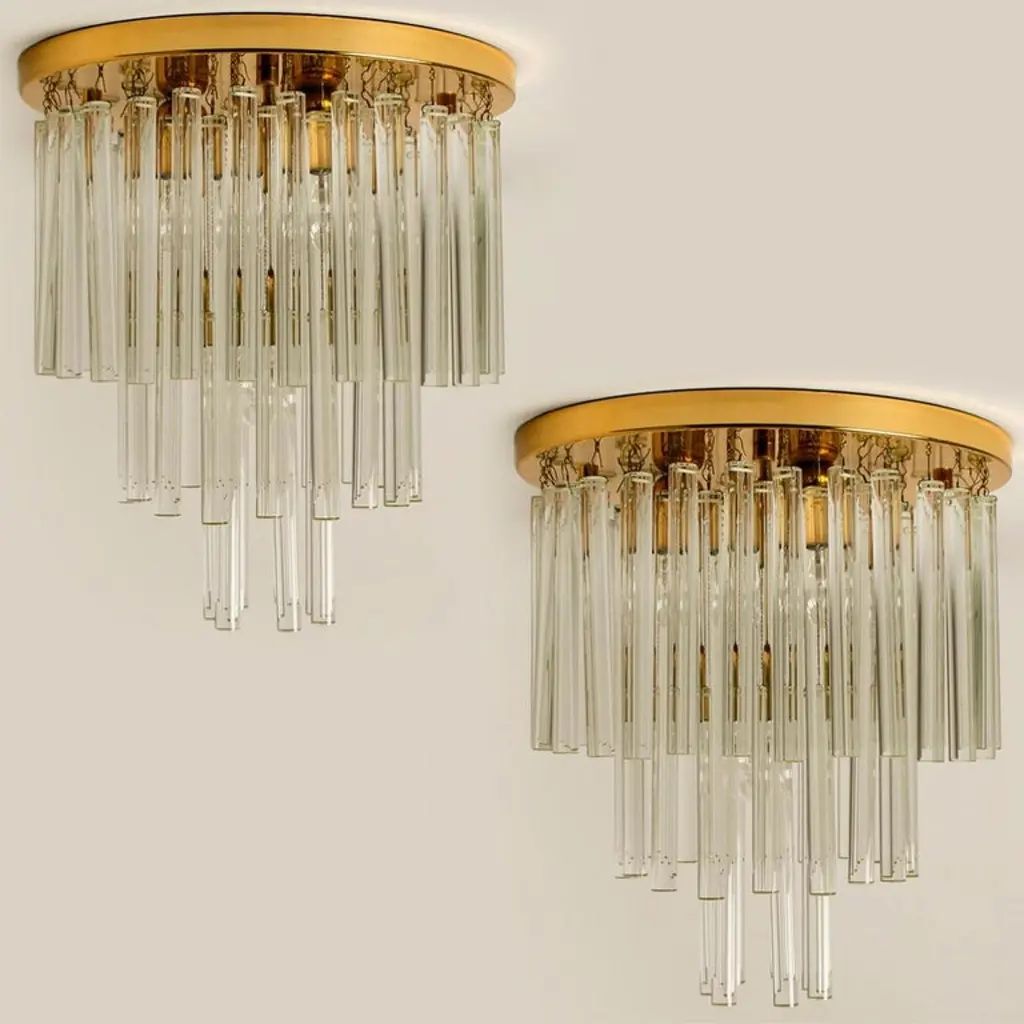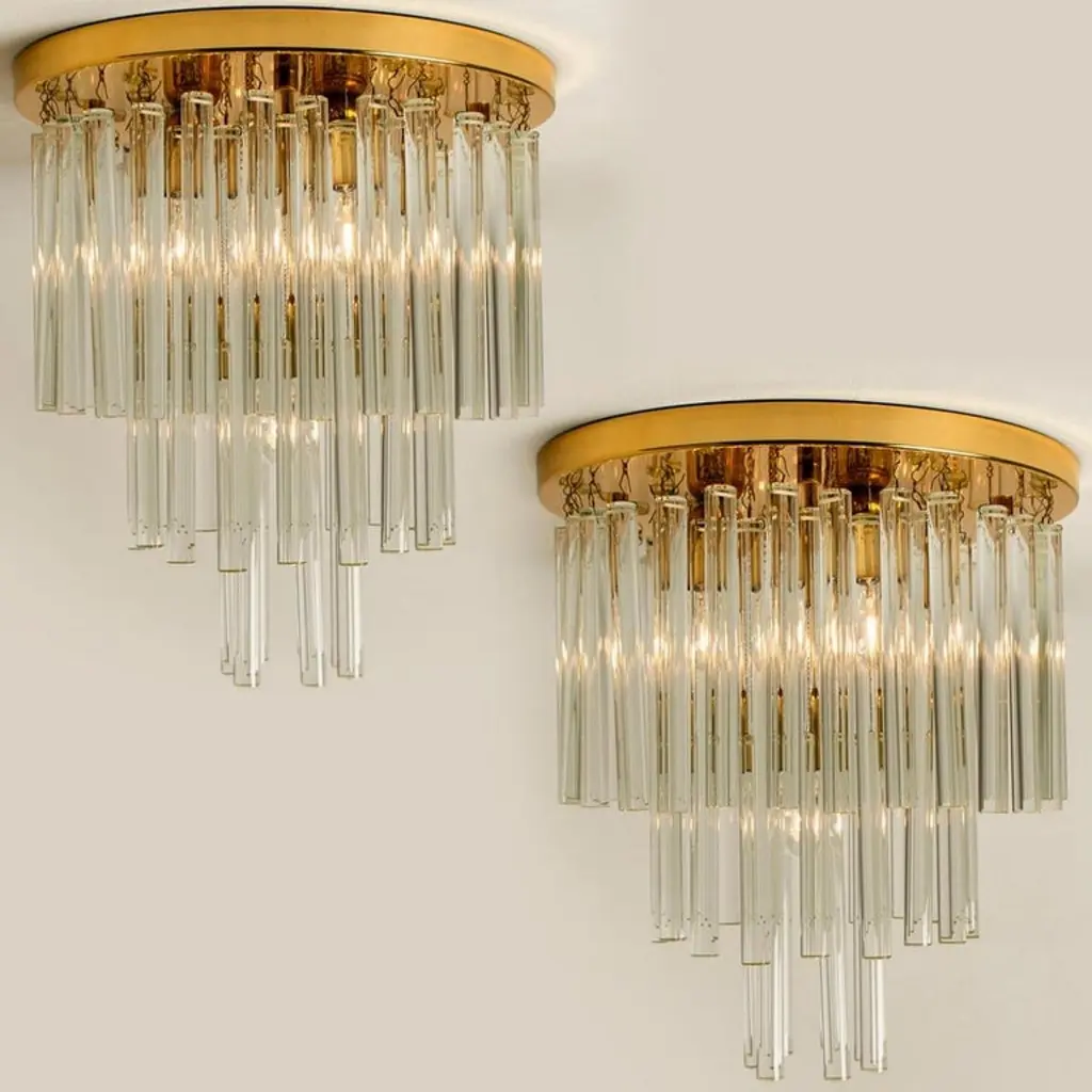 One Of The Nine Palme Chandeliers Or Flush Mounts Brass And Crystal, 1960s