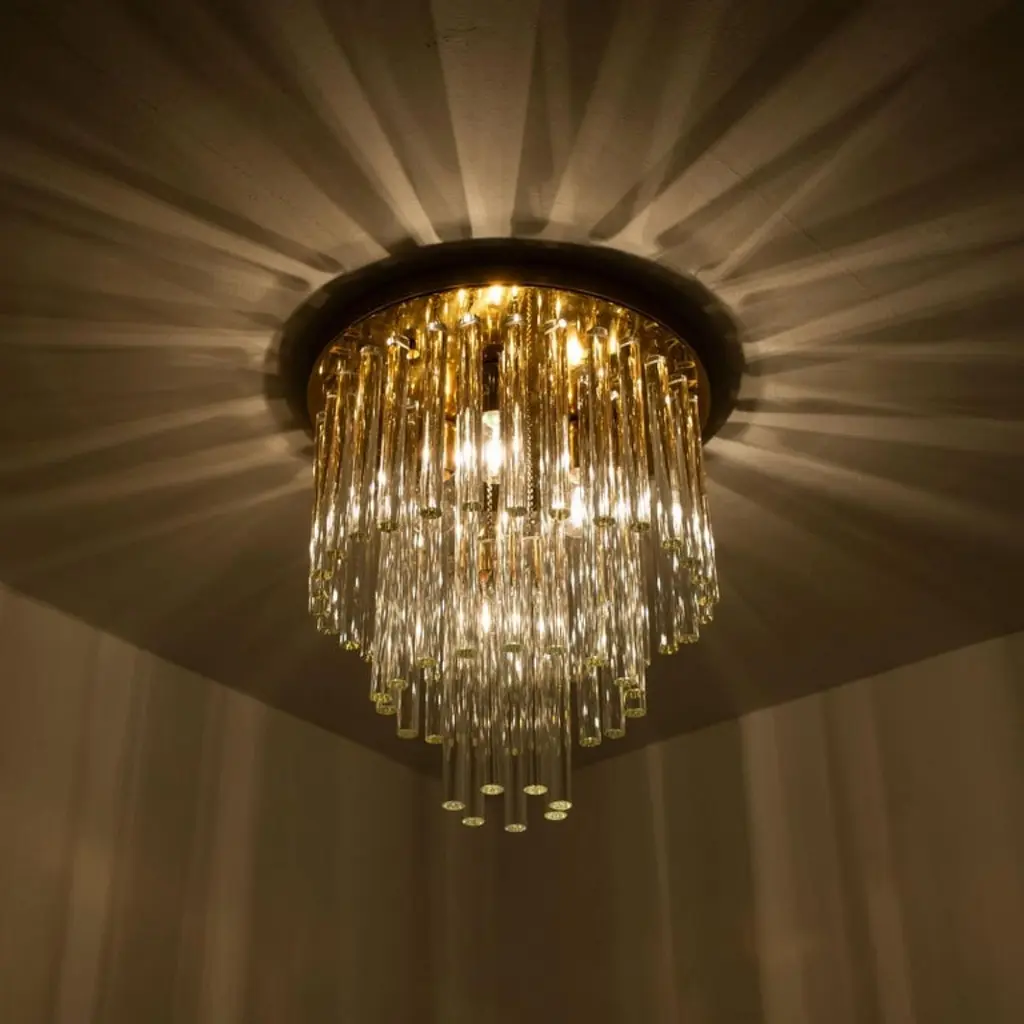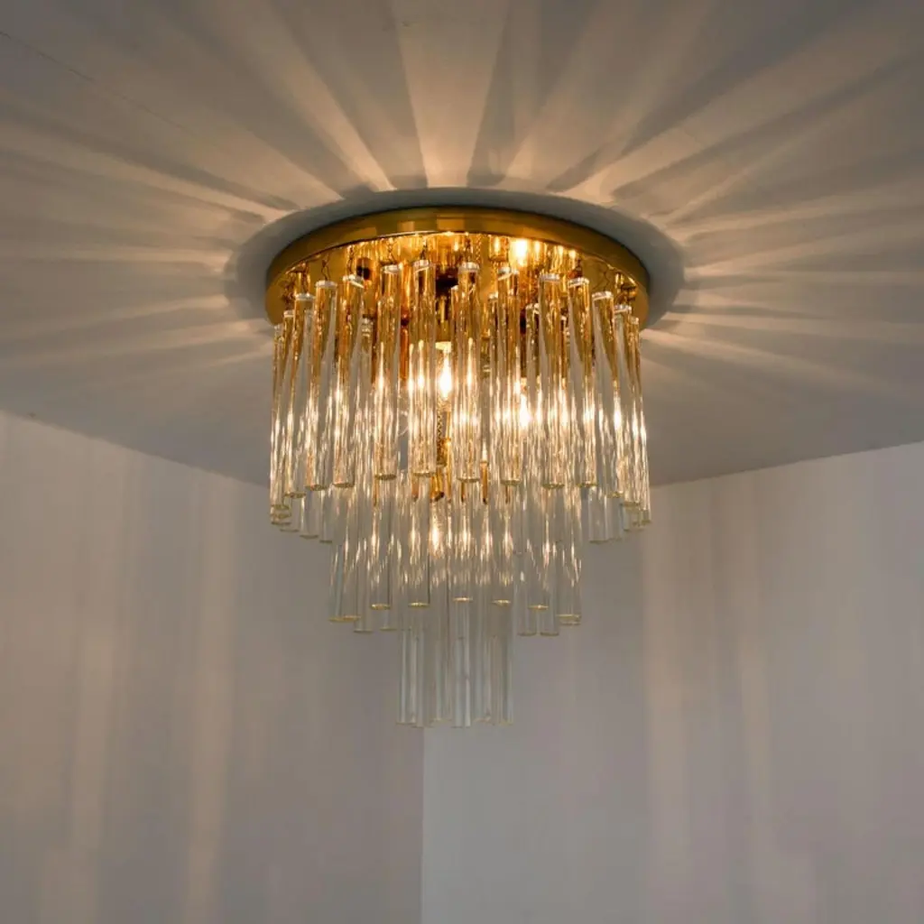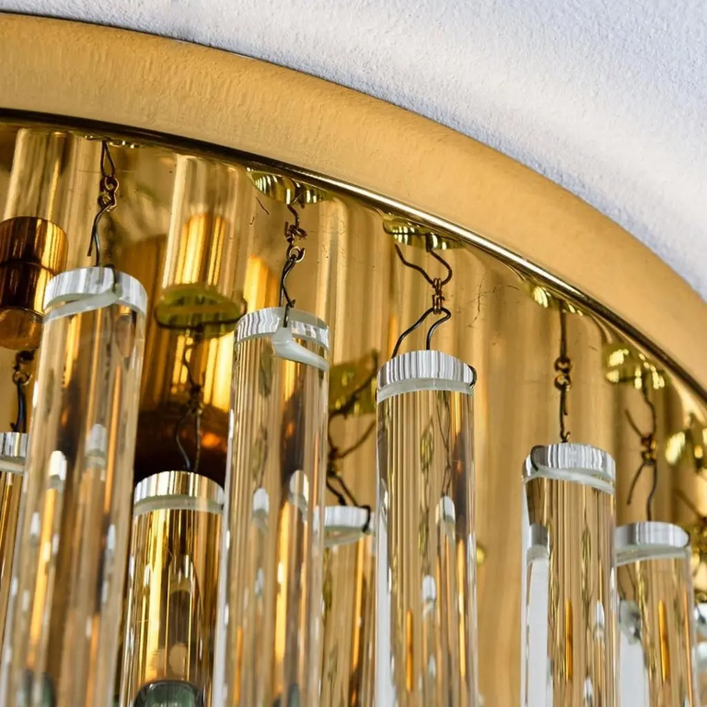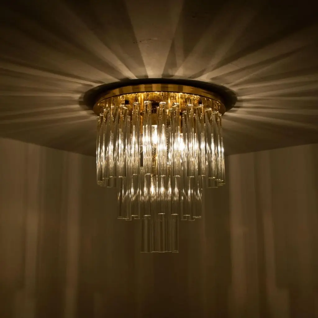 One Of The Nine Palme Chandeliers Or Flush Mounts Brass And Crystal, 1960s