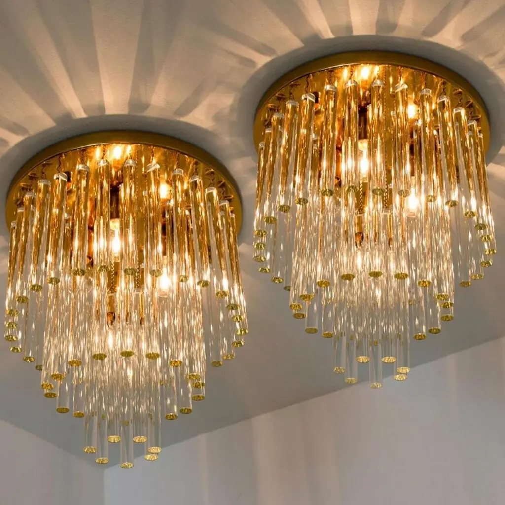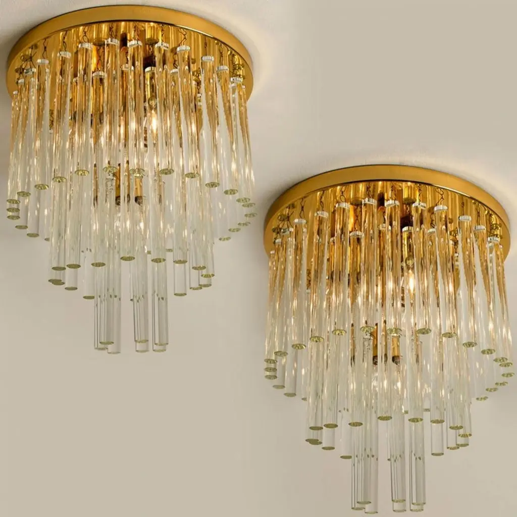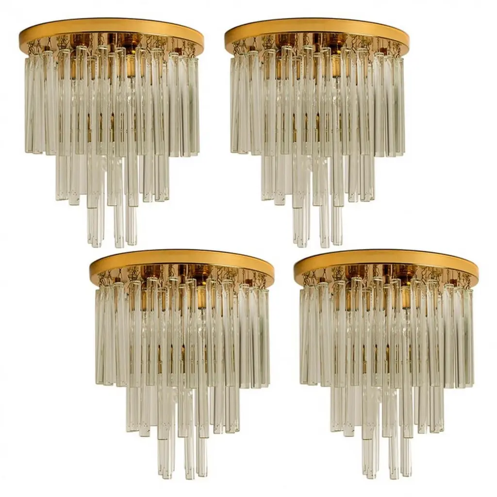 Wonderful light effect due to lovely glass elements. In very good vintage condition and ready to use.Each light requires 4 X E 27 up to 40 Watts each. All electrical items function on various voltage standards (from 110 till 240 Volts / Ex. USA-UK- etc.).