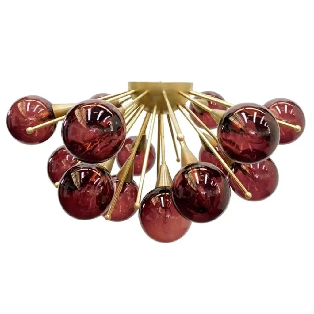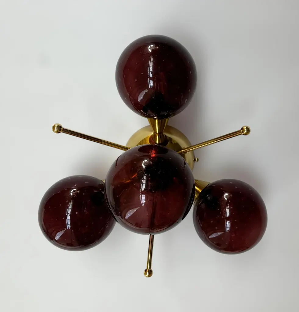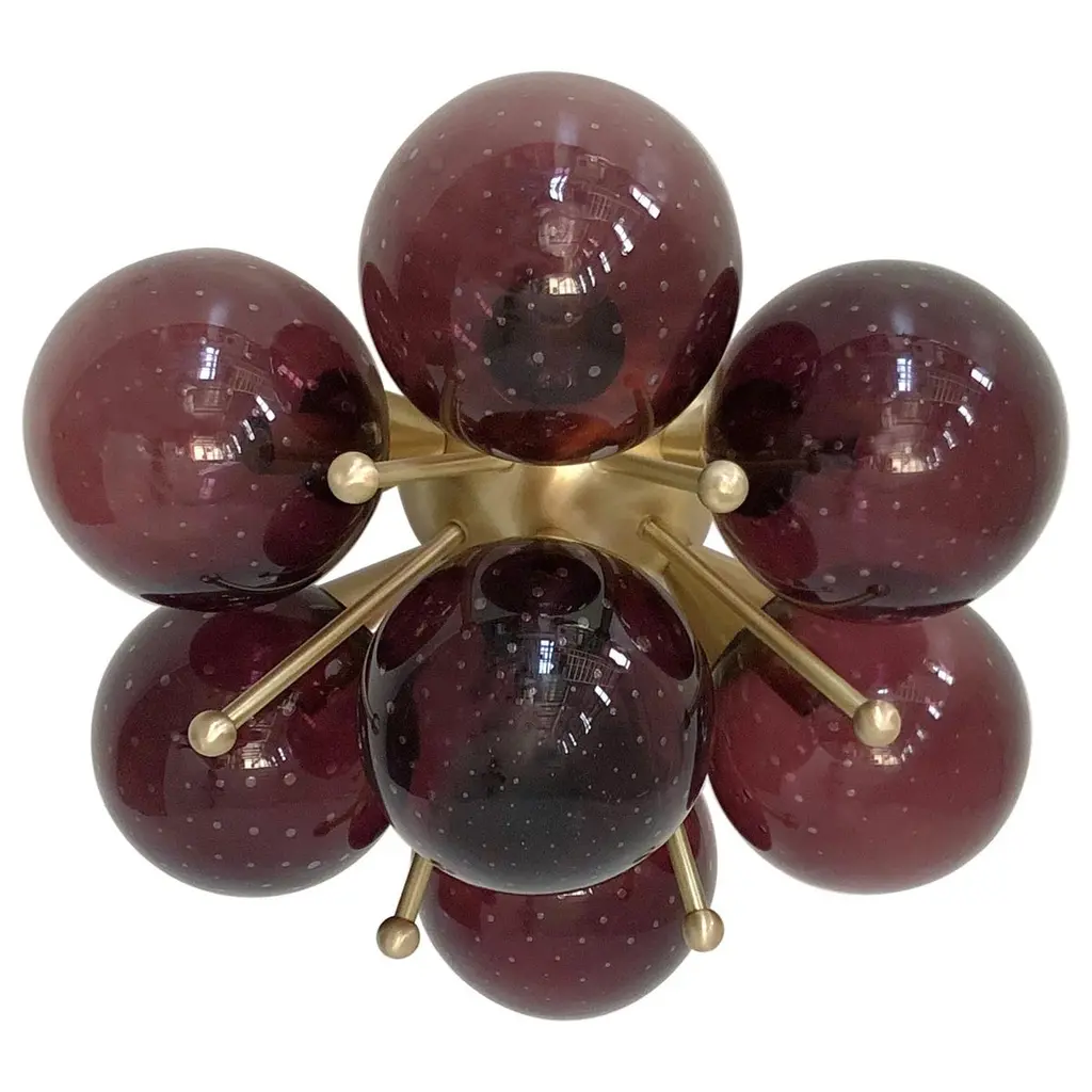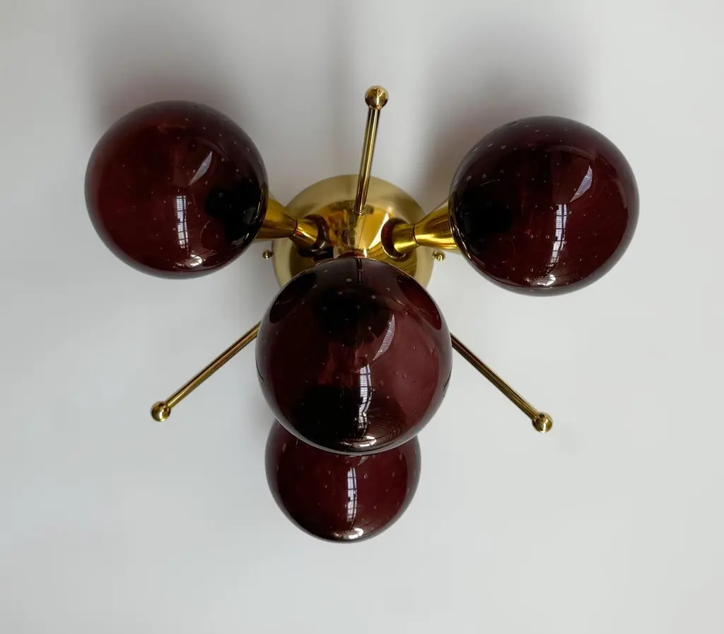Italian flush mount with 4 Murano glass globes mounted on solid brass frame in lacquered polished brass finishDesigned by Fabio Bergomi / Made in Italy4 lights / E12 or E14 type / max 40W eachDiameter: `18 inches / Height: 10 inchesOrder only / This item ships from ItalyOrder Reference #: FABIOLTD ORCHIDEA GLOBEThe listed price applies to all Brass finishes : Unlacquered Natural Brass, Unlacquered Polished Brass, Lacquered Polished Brass, Lacquered Satin BrassOther finishes available with upcharge of $200: Bronze, Polished Chrome, Satin Chrome, Polished Nickel, Satin Nickel, Polished Black Nickel, Satin Black Nickel, Polished Copper, Satin Copper