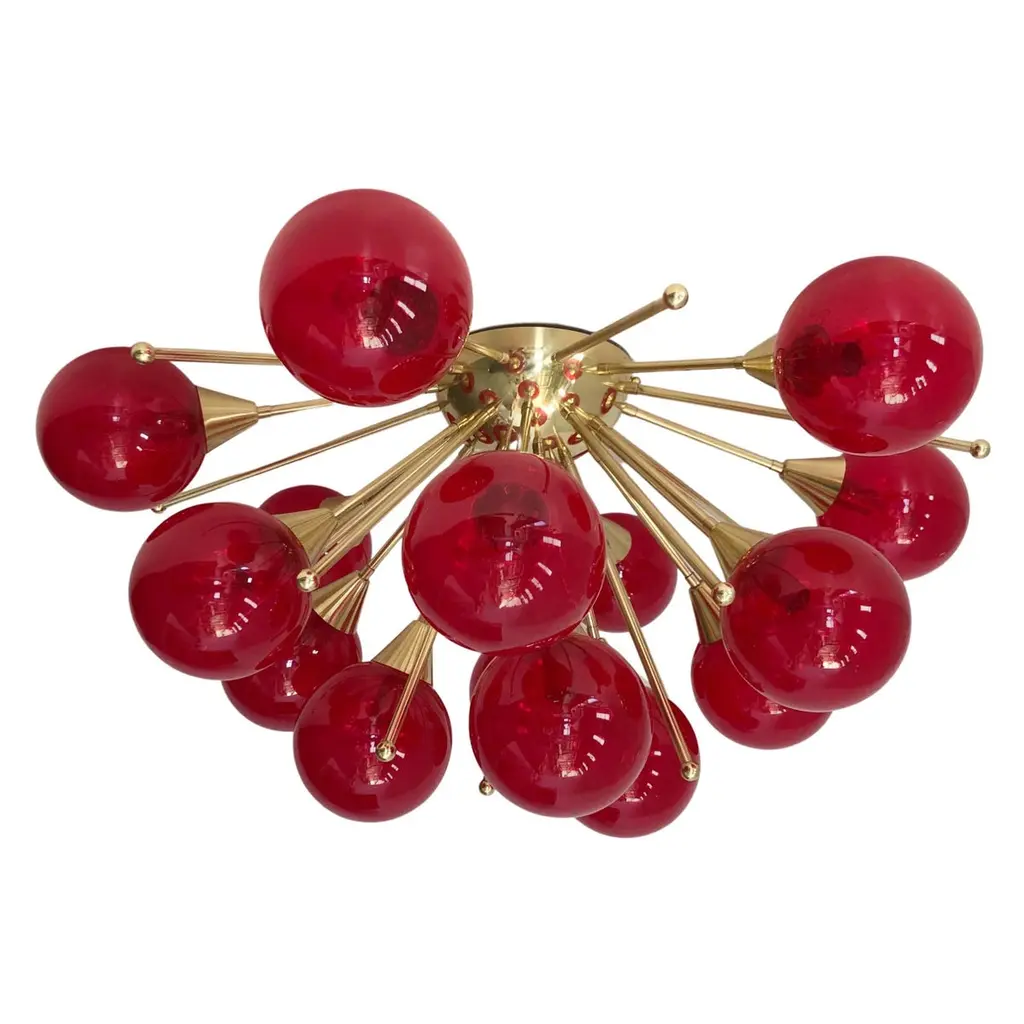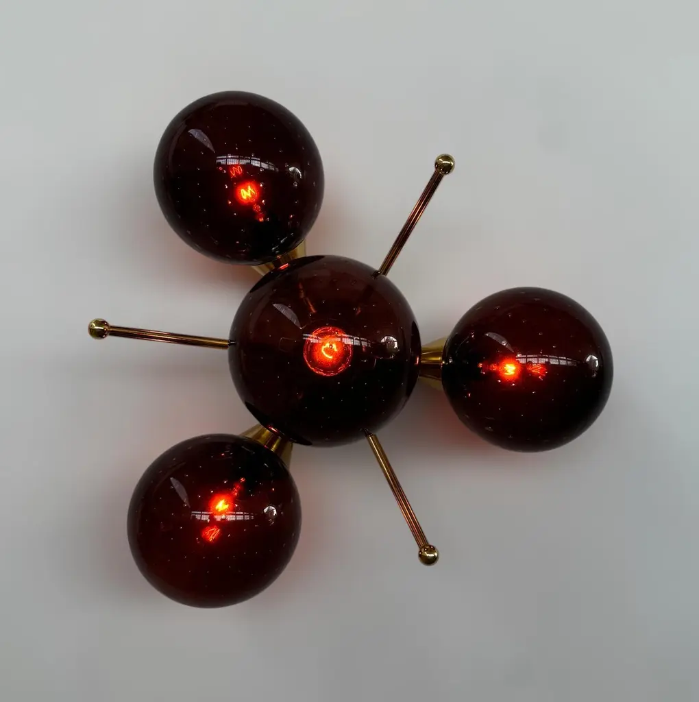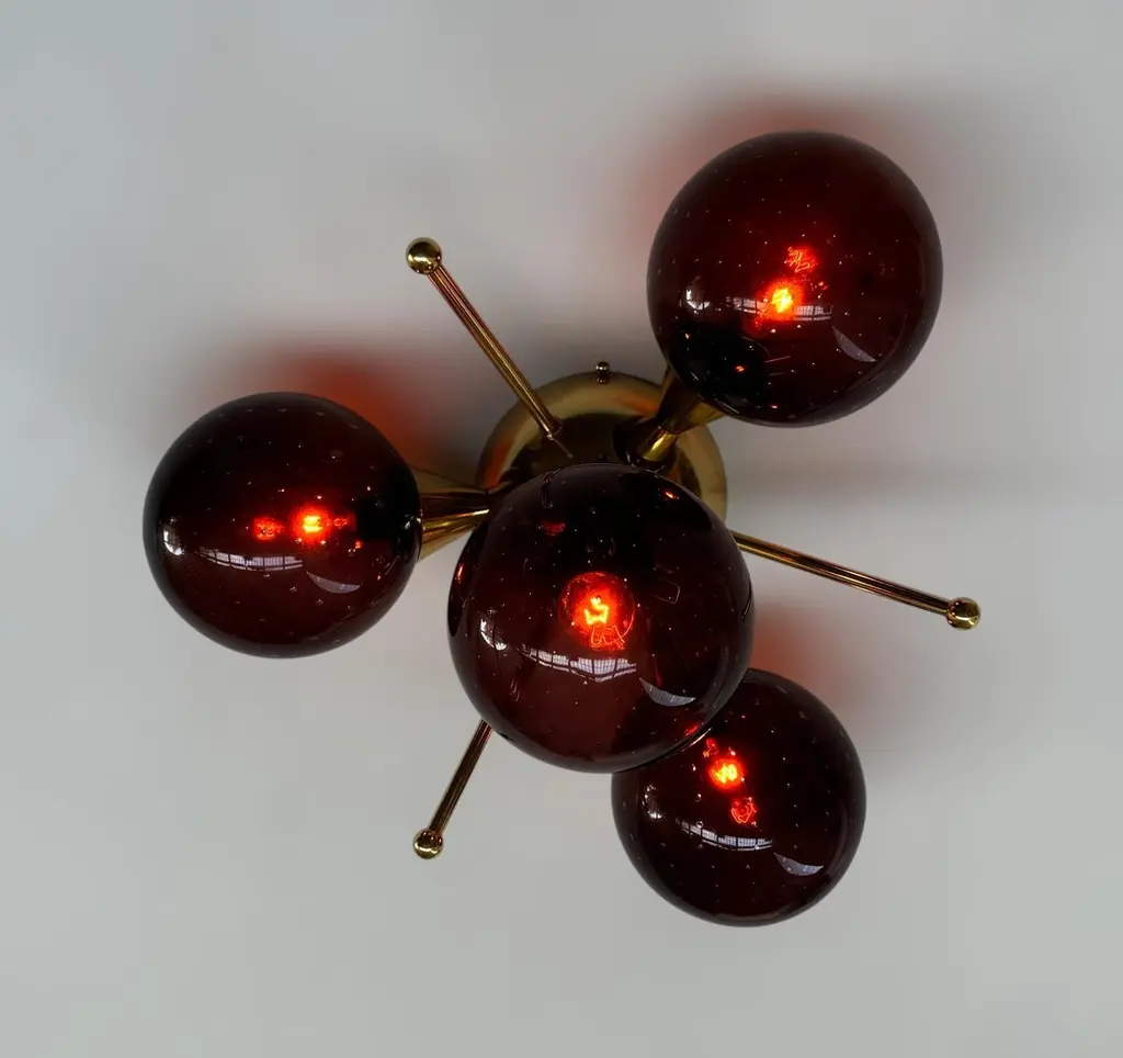 Italian flush mount with 4 Murano glass globes mounted on solid brass frame in lacquered polished brass finishDesigned by Fabio Bergomi / Made in Italy4 lights / E12 or E14 type / max 40W eachDiameter: `18 inches / Height: 10 inchesOrder only / This item ships from ItalyOrder Reference #: FABIOLTD ORCHIDEA GLOBEThe listed price applies to all Brass finishes : Unlacquered Natural Brass, Unlacquered Polished Brass, Lacquered Polished Brass, Lacquered Satin BrassOther finishes available with upcharge of $200: Bronze, Polished Chrome, Satin Chrome, Polished Nickel, Satin Nickel, Polished Black Nickel, Satin Black Nickel, Polished Copper, Satin Copper