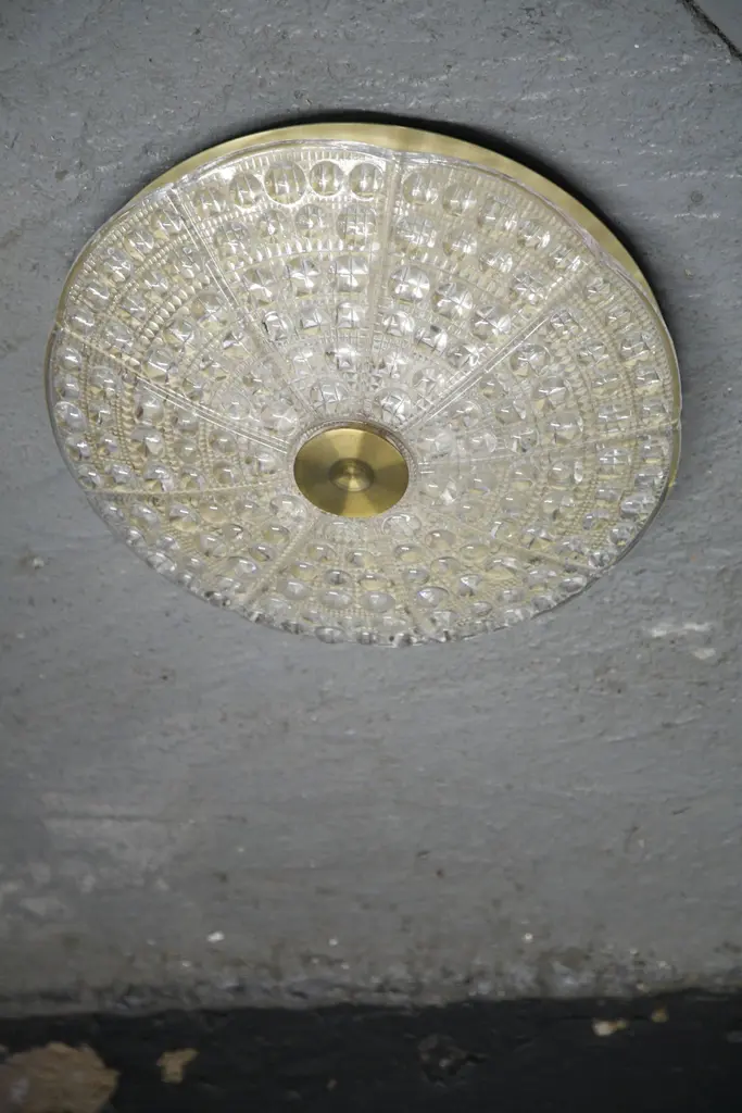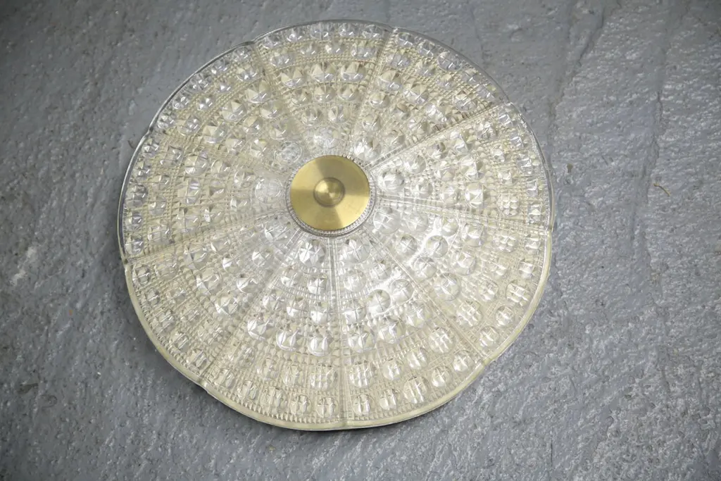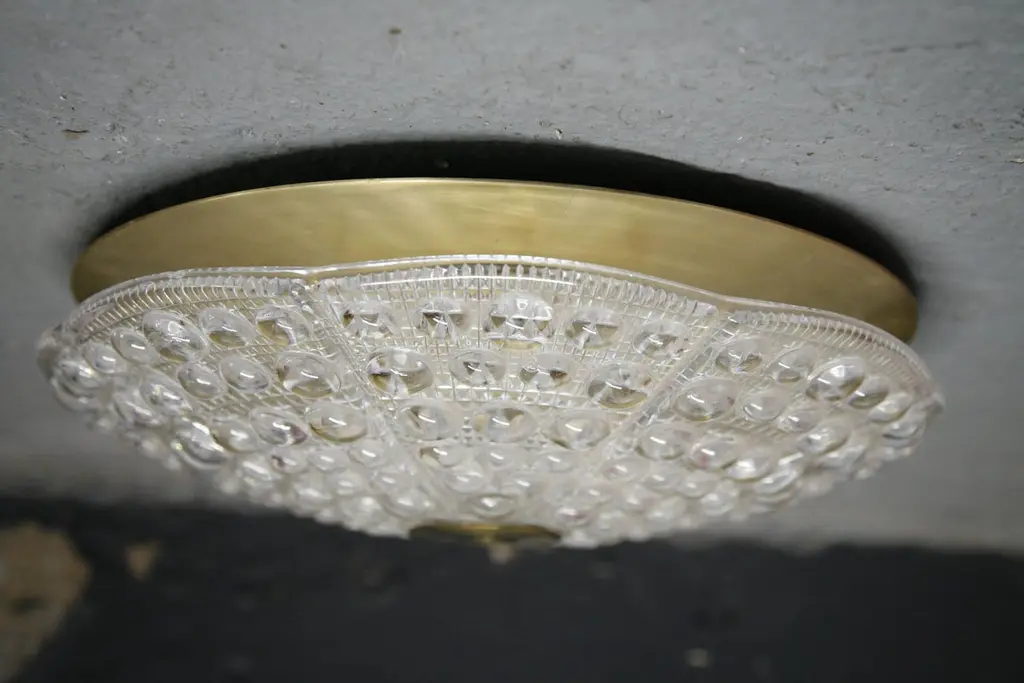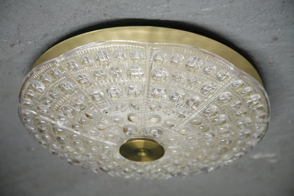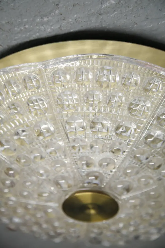 Orrefors Flush Mount, Crystal And Brass, 1960, Sweden
