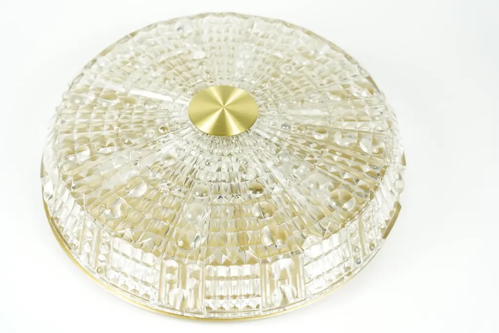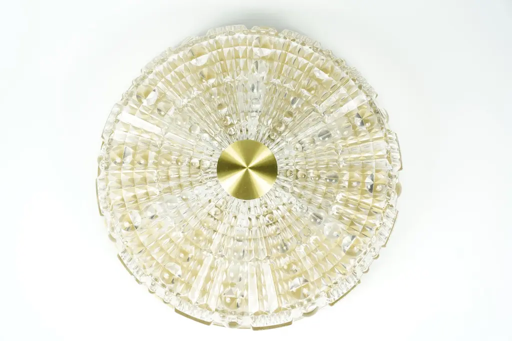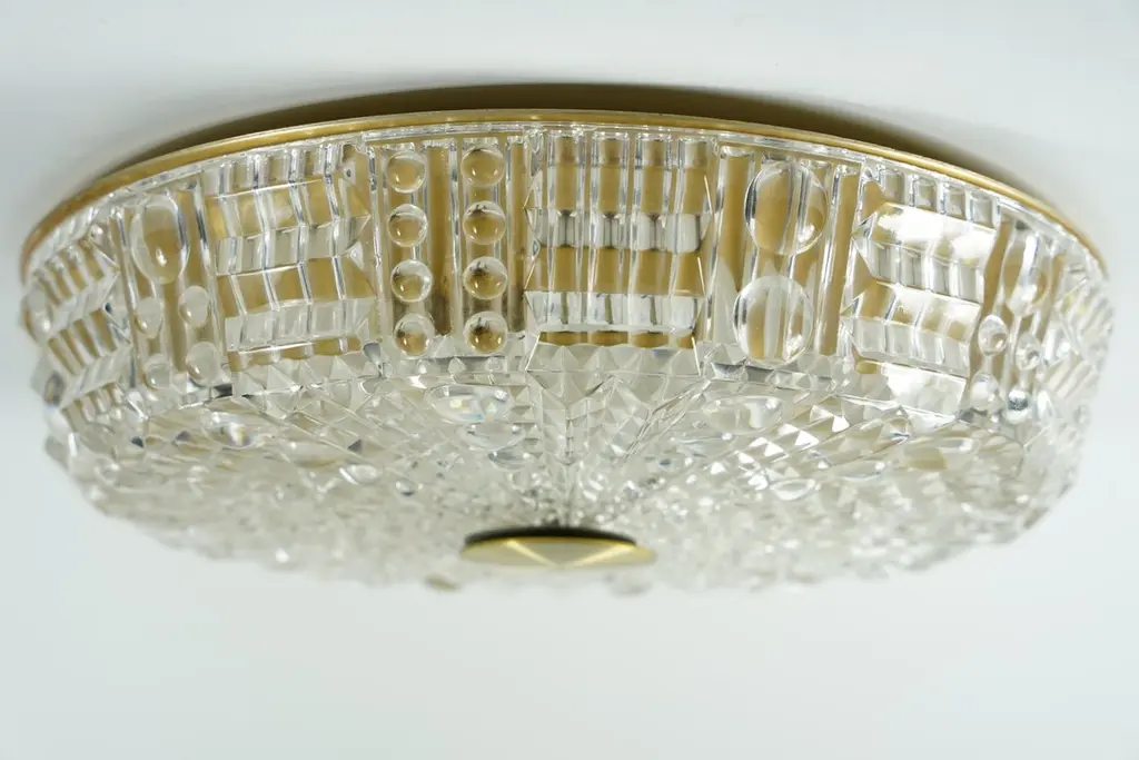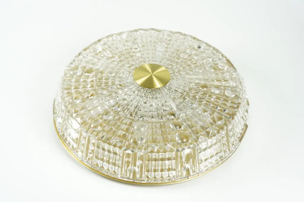 Orrefors Flushmount, Crystal And Brass, 1960, Sweden