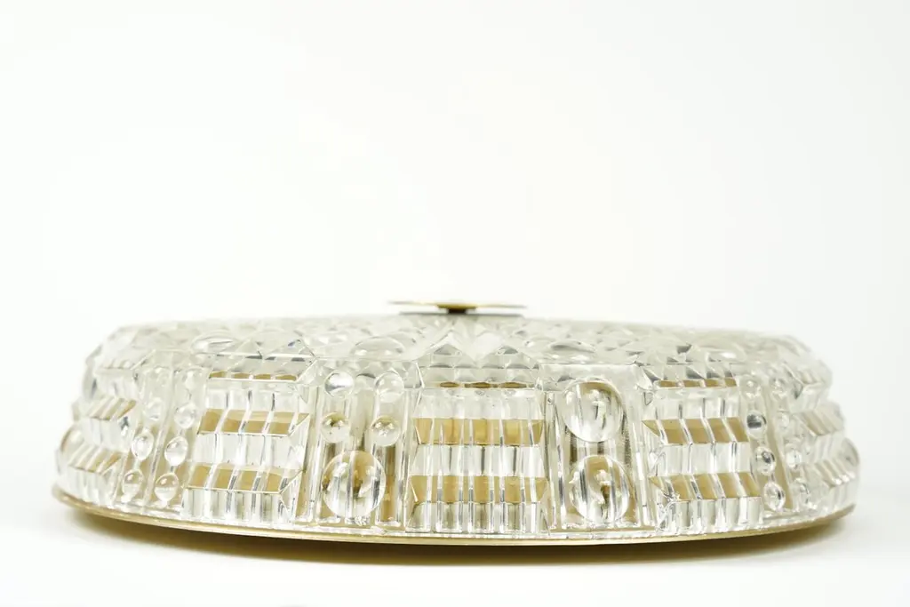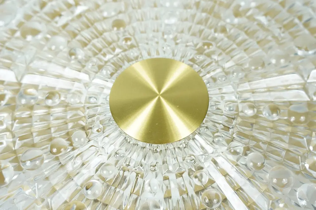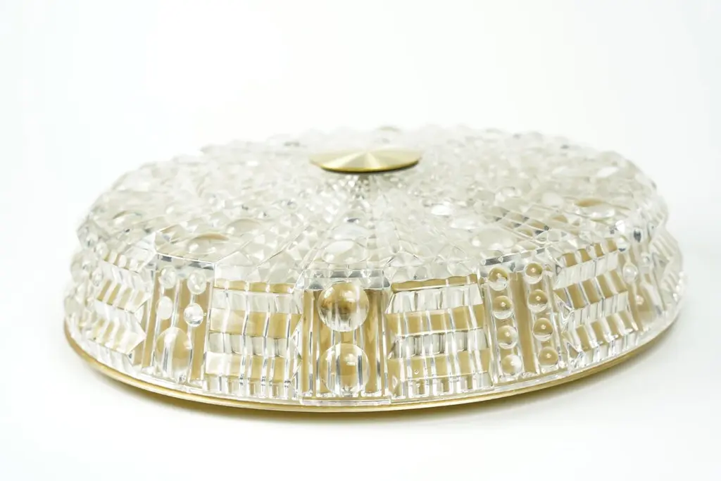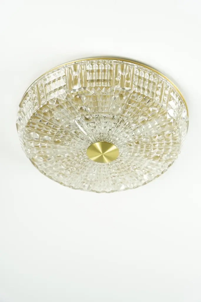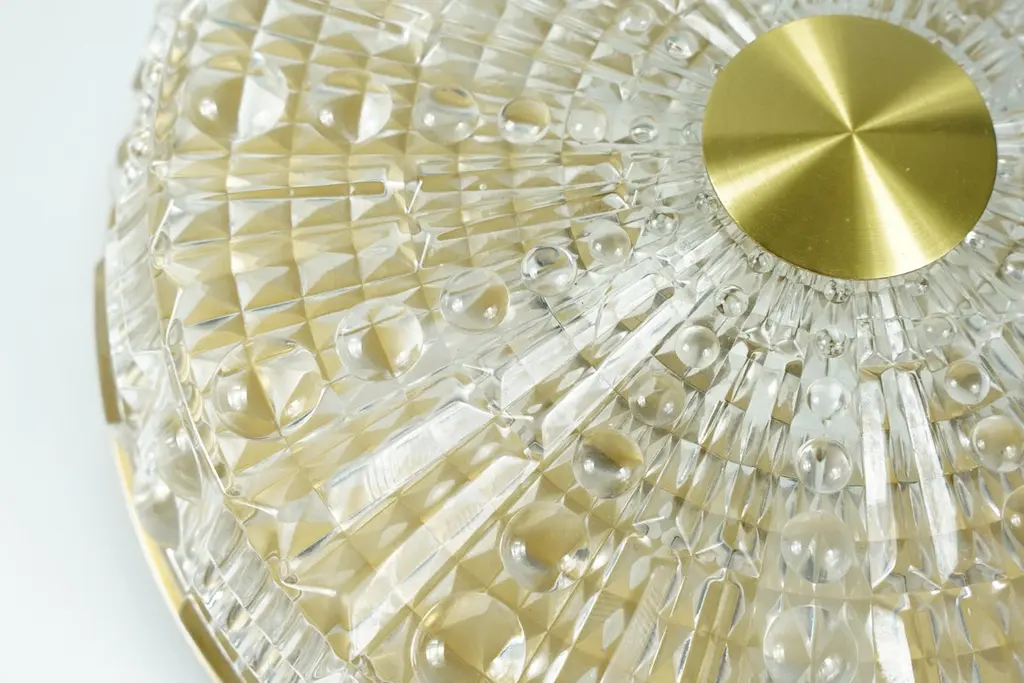 Orrefors Flushmount, Crystal And Brass, 1960, Sweden