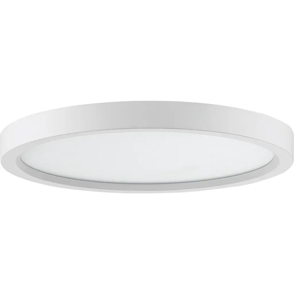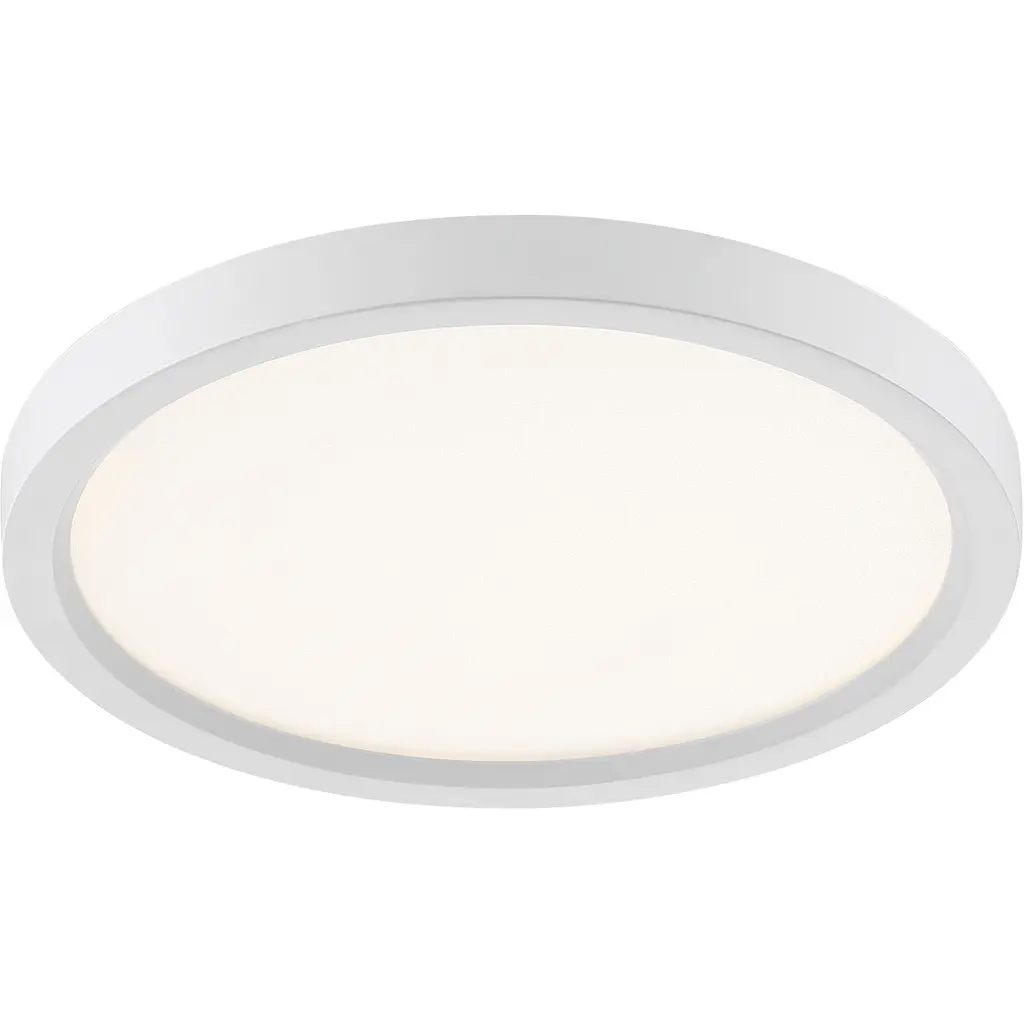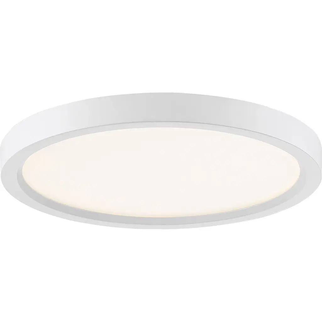Available in three finishes and three sizes, the Outskirts flush mount is suited for a variety of room applications. In your choice of brushed nickel, white or oil-rubbed bronze, it is featured in sizes of 7.5, 11 or 15. The white acrylic shade is illuminated with integrated LED technology and the thick canopy adds depth to the simple structure.