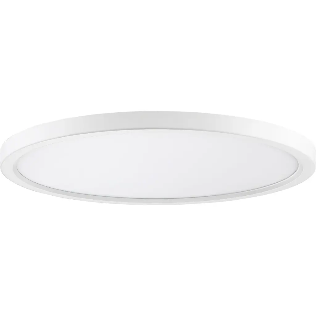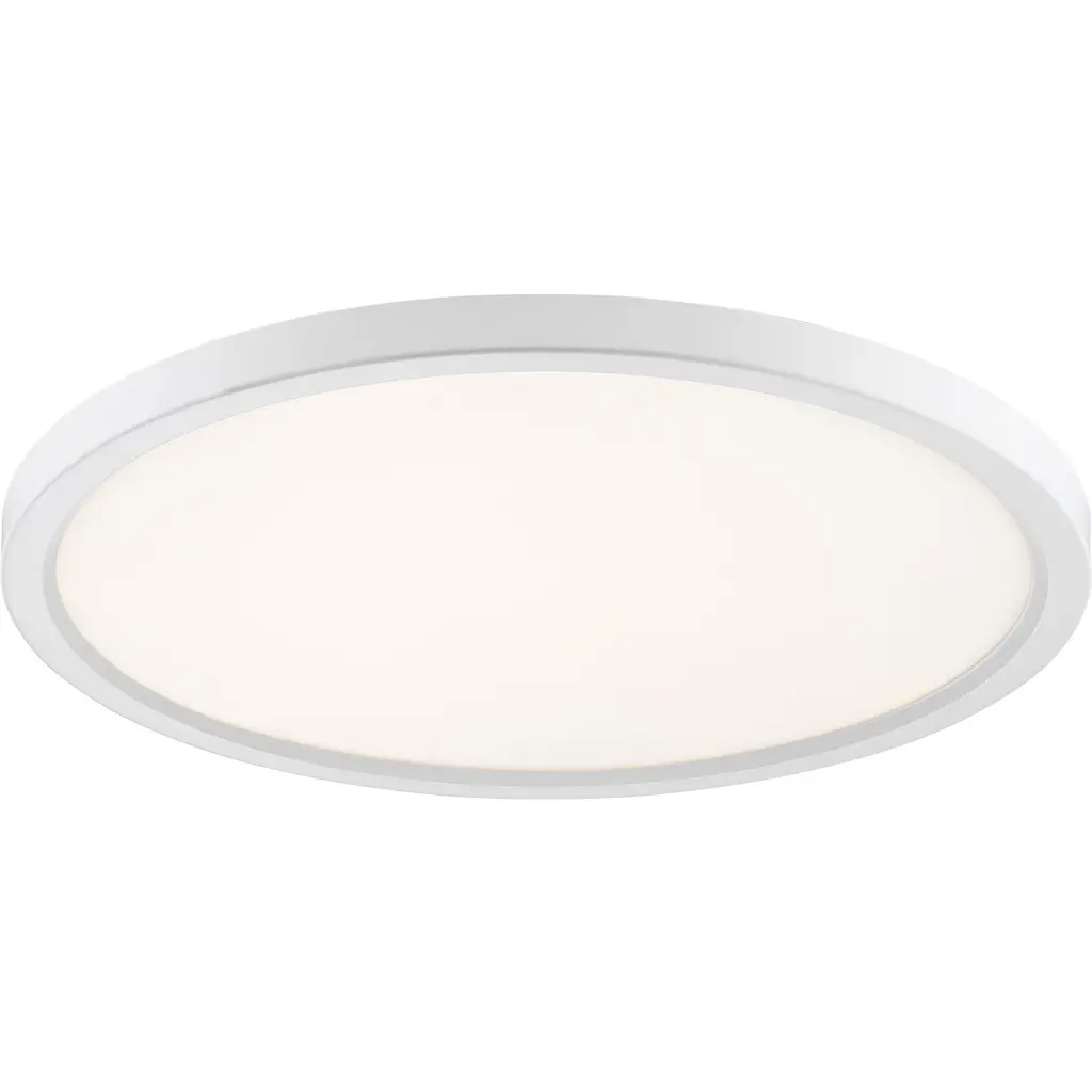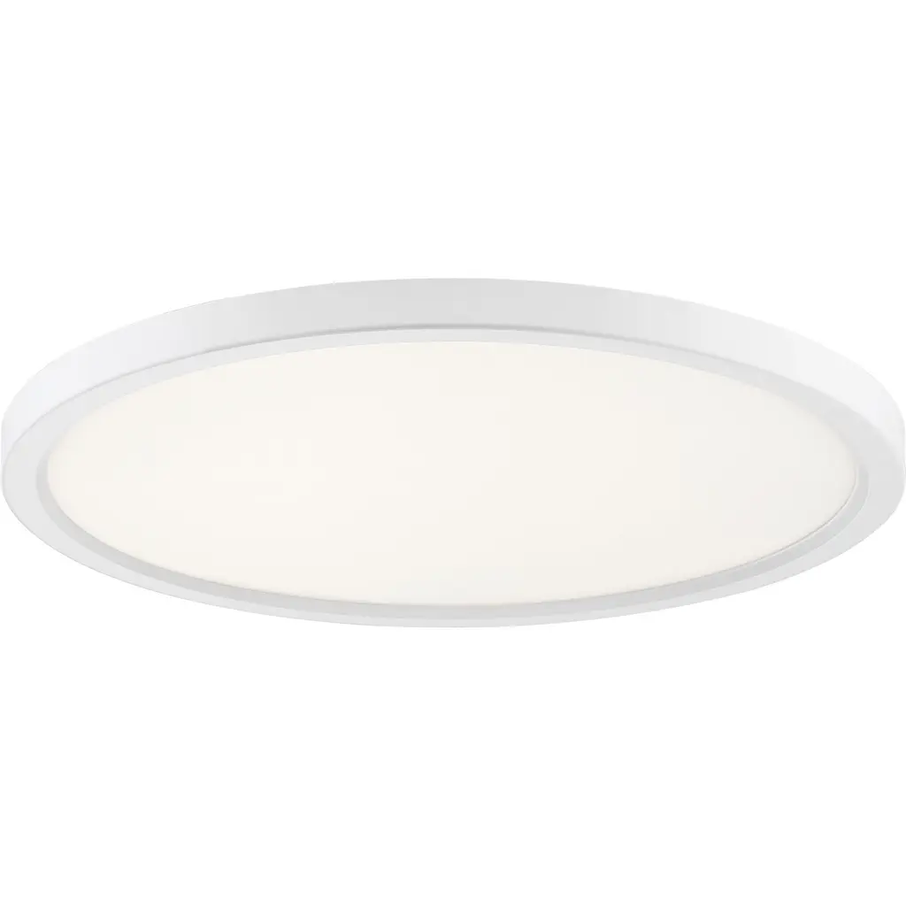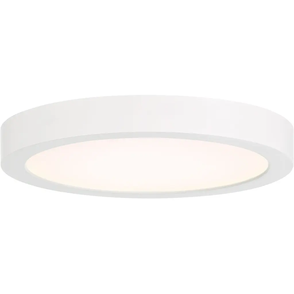 Available in three finishes and three sizes, the Outskirts flush mount is suited for a variety of room applications. In your choice of brushed nickel, white or oil-rubbed bronze, it is featured in sizes of 7.5, 11 or 15. The white acrylic shade is illuminated with integrated LED technology and the thick canopy adds depth to the simple structure.