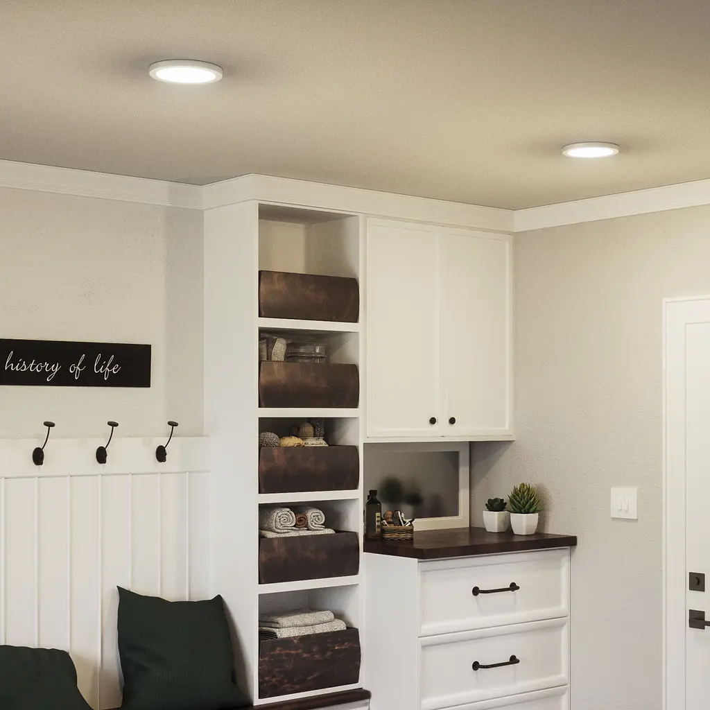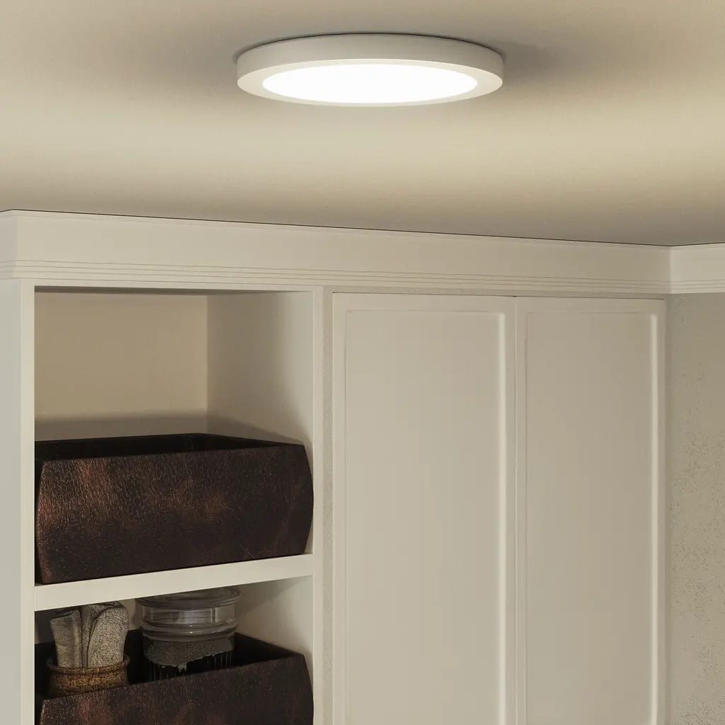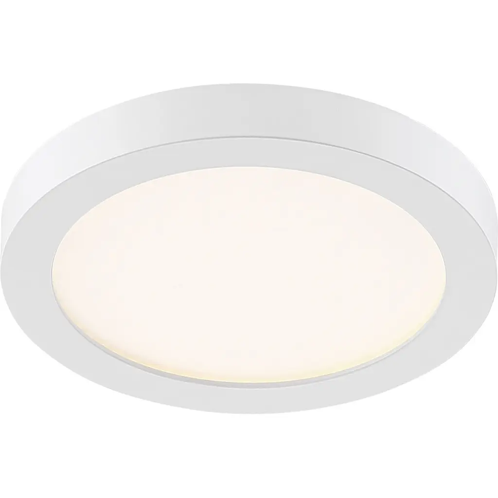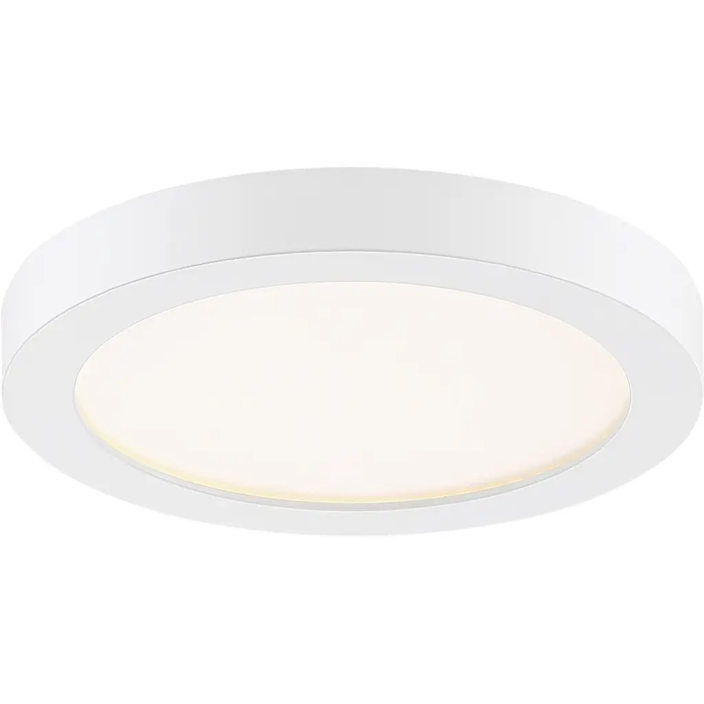 Available in three finishes and three sizes, the Outskirts flush mount is suited for a variety of room applications. In your choice of brushed nickel, white or oil-rubbed bronze, it is featured in sizes of 7.5, 11 or 15. The white acrylic shade is illuminated with integrated LED technology and the thick canopy adds depth to the simple structure.