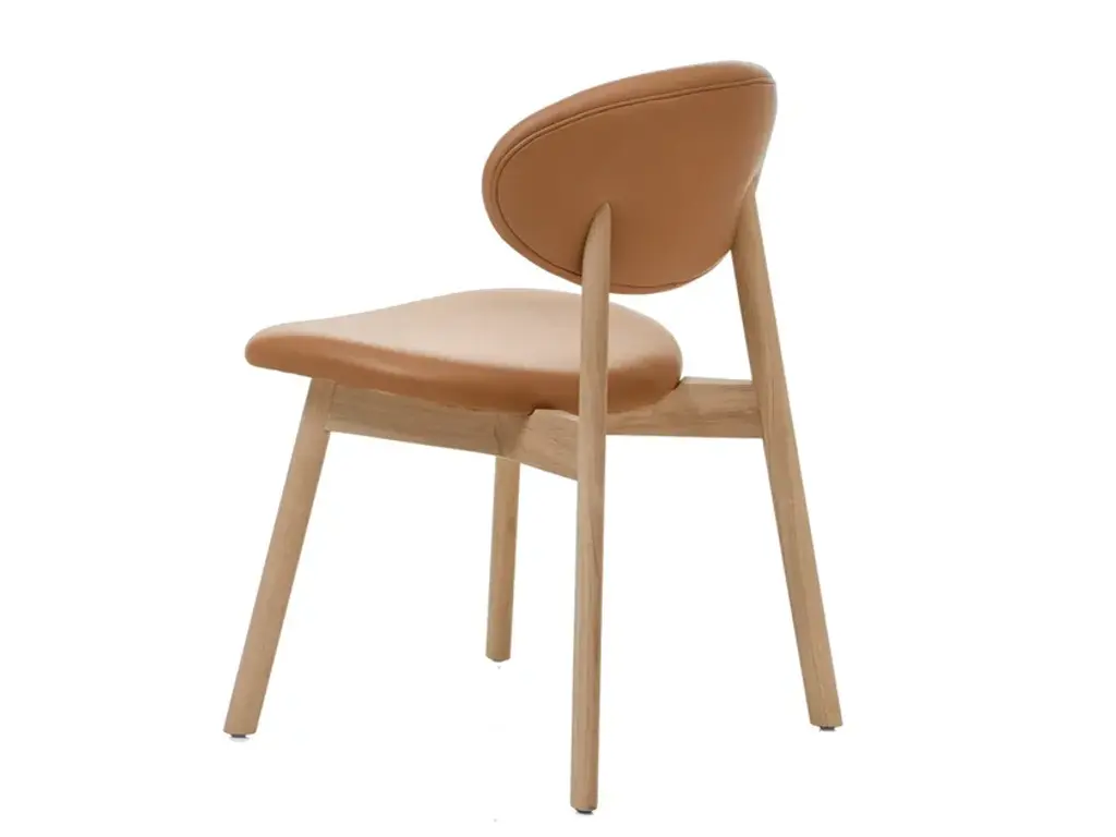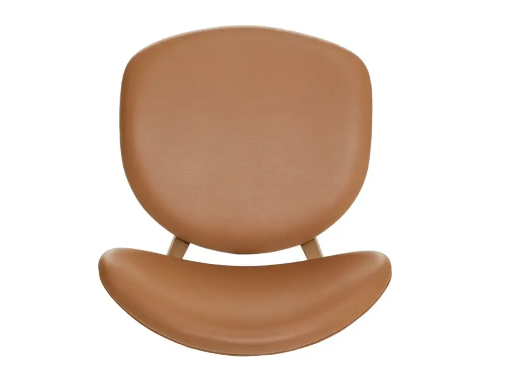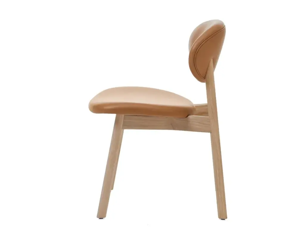 The Ovoid Chair is an upholstered chair with a carved, solid wood base. The chair features a flush welt detail on the seat and back. Materials: Solid carved White Oak or Walnut. The BassamFellows Ovoid Chair is a deceptively simple and casual chair derived from the pure geometry of elliptical forms. With a big sit despite a smaller footprint, Ovoid is the kind of pull-up chair that defines ease. With no sharp edges and no corners, the chair lends itself to random, organic layouts that encourage viewing, lounging or leaning in multiple directions. The chunky, sculptural wood base with elliptical legs suspends and floats the signature upholstered seat and back creating a clear separation of parts and contributing to a sense of lightness.