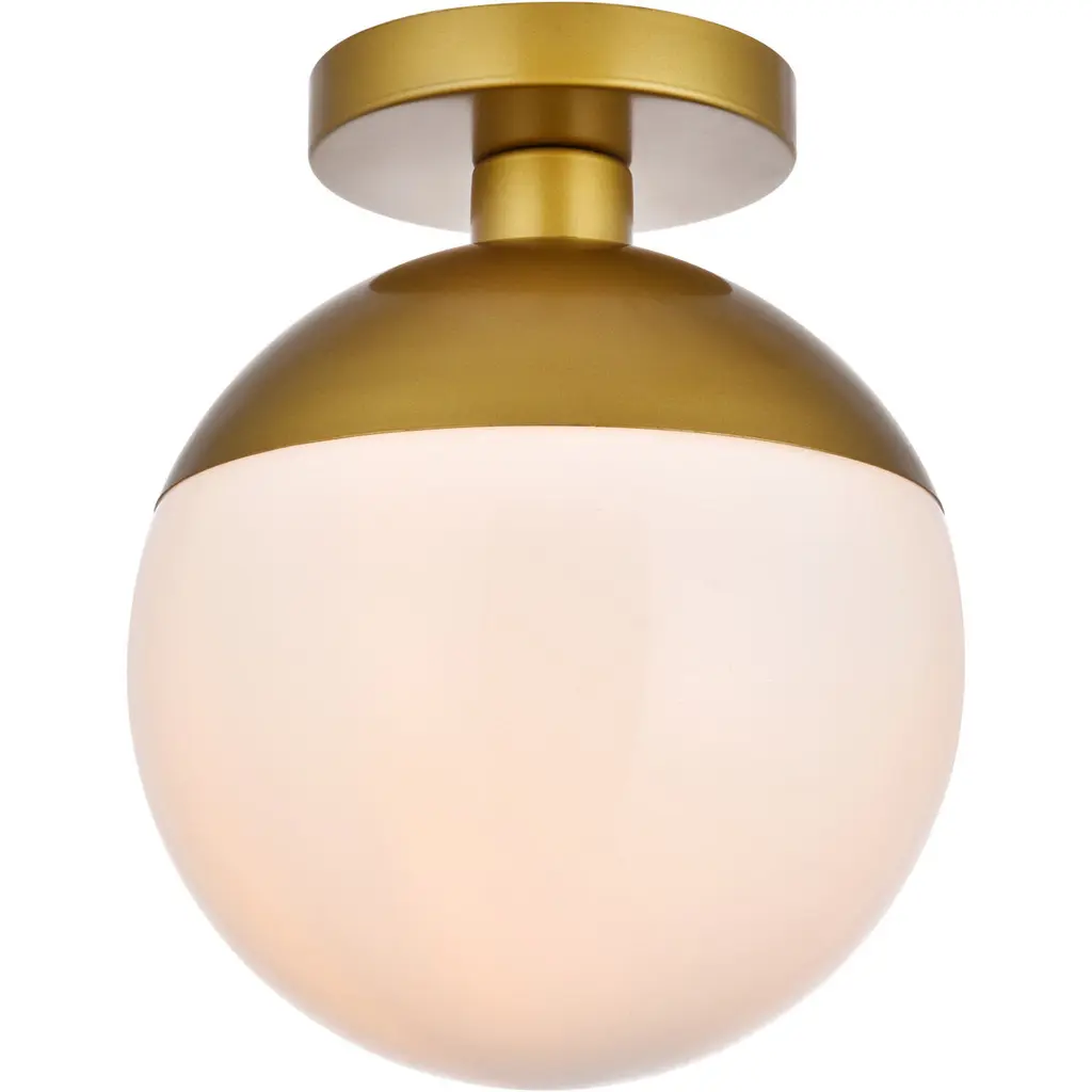Refined style with a practical design, Oyster Bay flush mount bring cosmopolitan sophistication anywhere, especially to an entryway, office, bathroom, bedroom, or kitchen. The smooth iron frame features a disk-shaped canopy and comes in a brass finish. A touch of color on top of the frosted white spherical glass shade brings character to this classic style. Living in the big city has never been this easy.