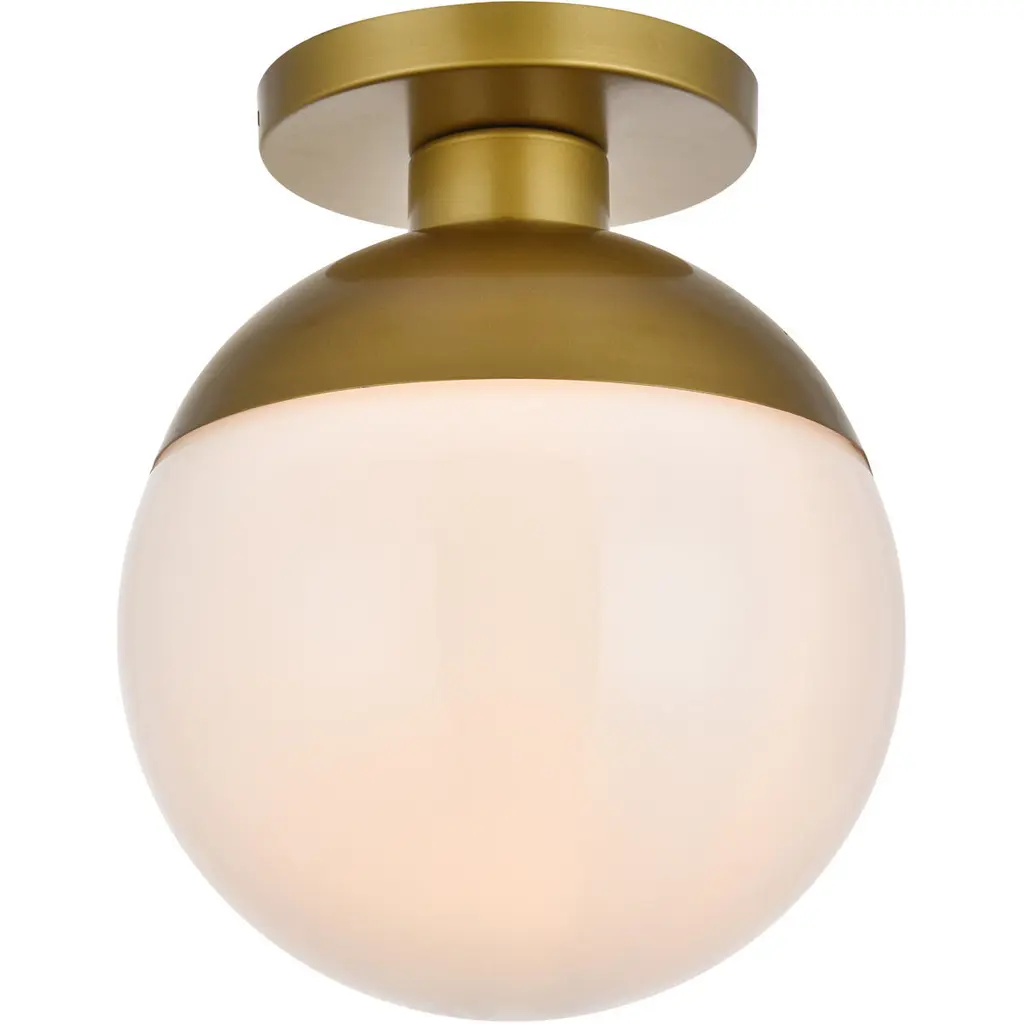 Refined style with a practical design, Oyster Bay flush mount bring cosmopolitan sophistication anywhere, especially to an entryway, office, bathroom, bedroom, or kitchen. The smooth iron frame features a disk-shaped canopy and comes in a brass finish. A touch of color on top of the frosted white spherical glass shade brings character to this classic style. Living in the big city has never been this easy.