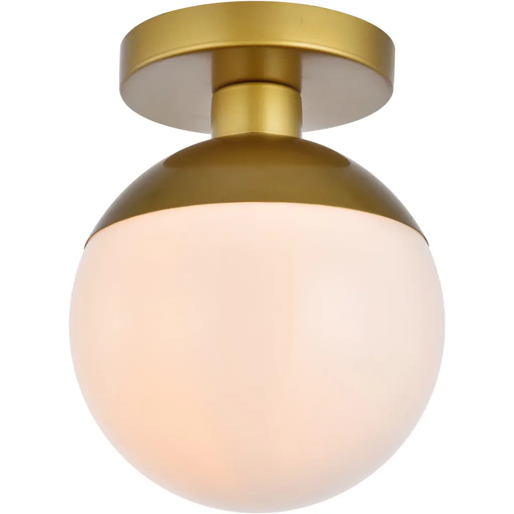 Refined style with a practical design, Oyster Bay flush mount bring cosmopolitan sophistication anywhere, especially to an entryway, office, bathroom, bedroom, or kitchen. The smooth iron frame features a disk-shaped canopy and comes in a brass finish. A touch of color on top of the frosted white spherical glass shade brings character to this classic style. Living in the big city has never been this easy.