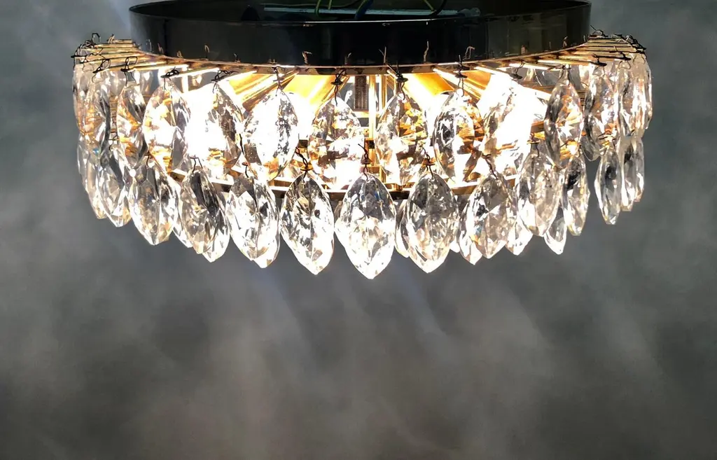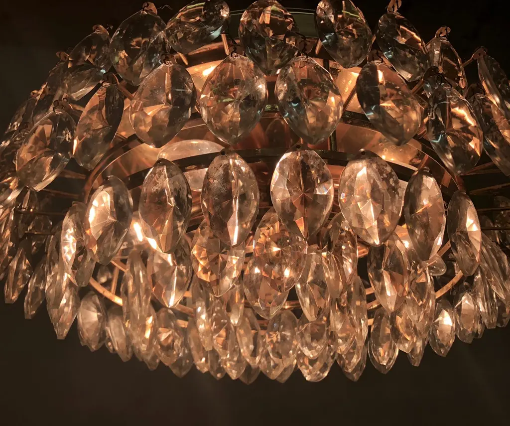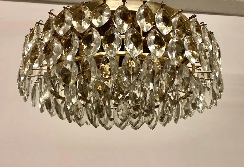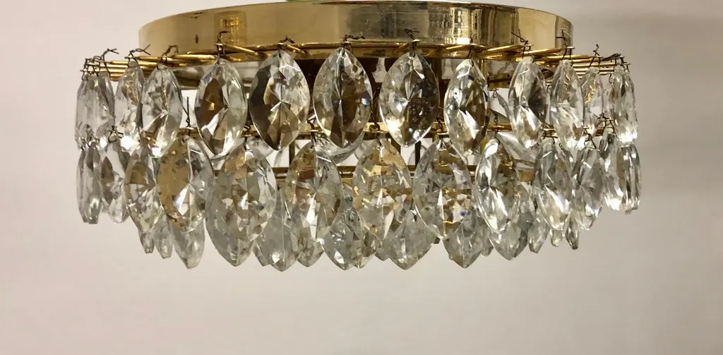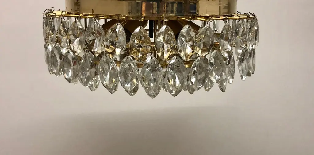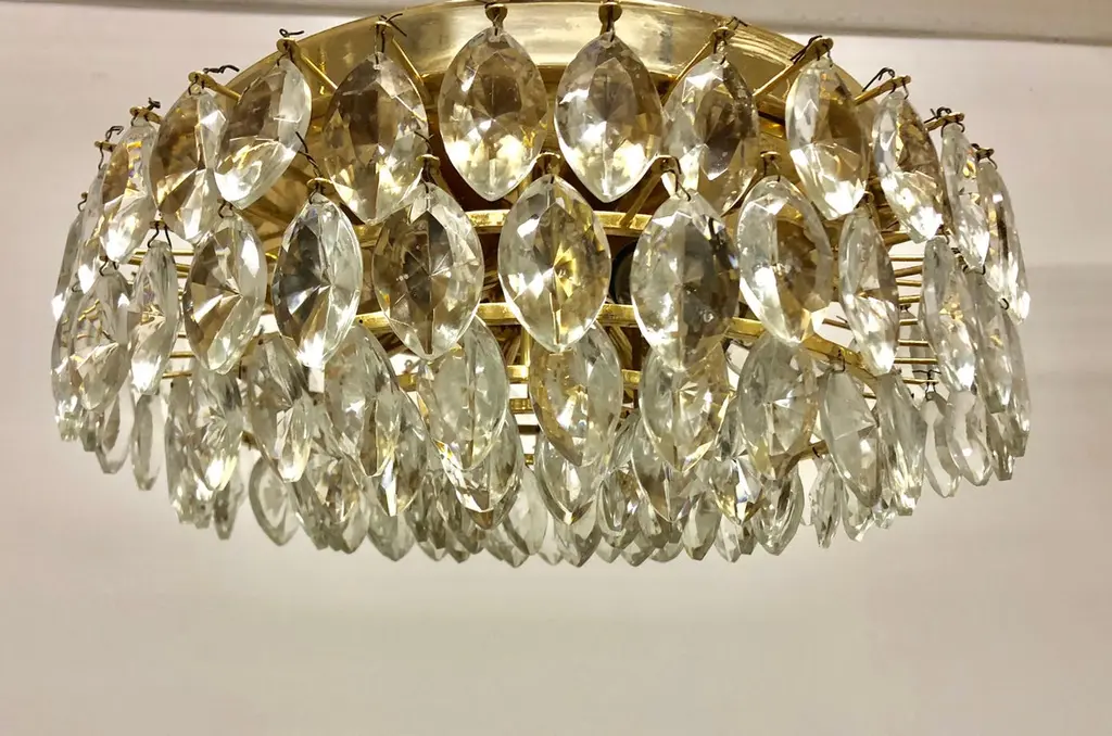 Pair Of Gilt Brass And Glass Flush Mounts By Lobmeyr, Austria, Ca.1960s,