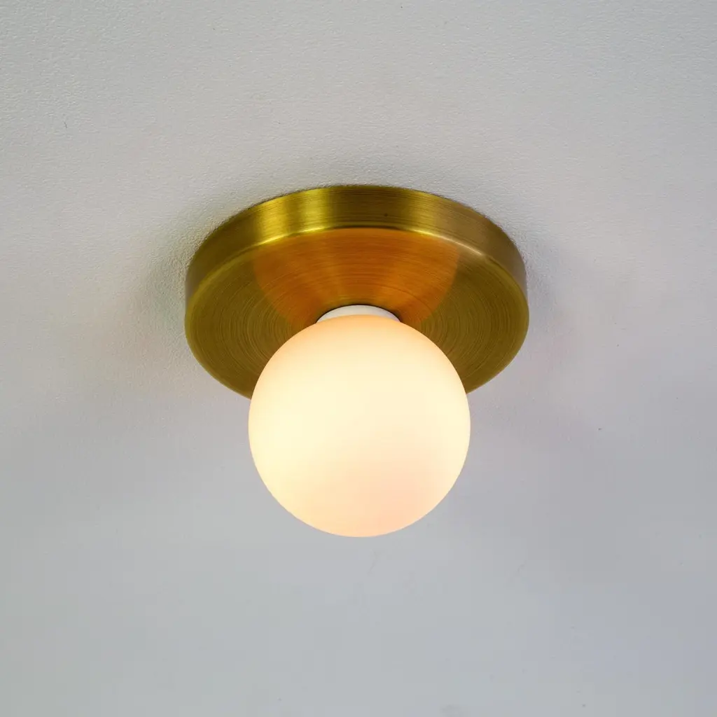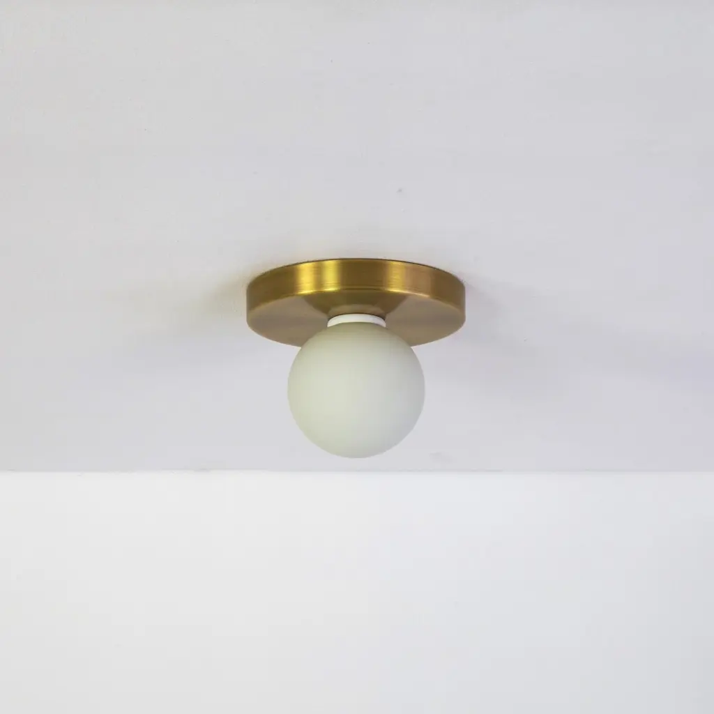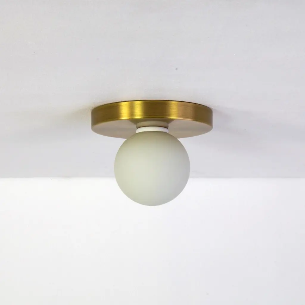 Pair Of Globe Flush Mounts, Research.lighting, Brass, 3In Glass, Made To Order