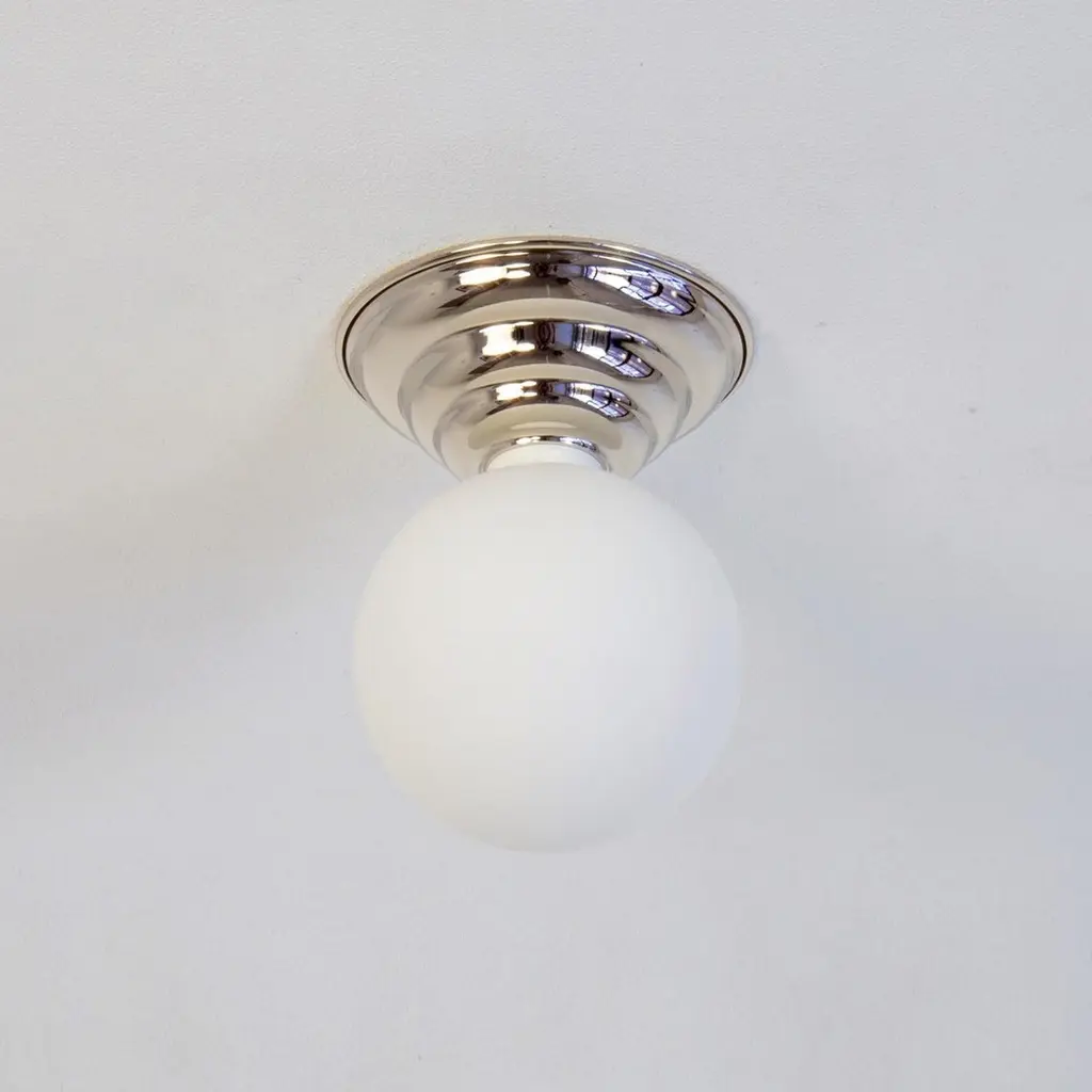 This listing is for 2x Hive Flush Mounts in polished nickel designed and manufactured by Research.Lighting.Materials: Brass, Steel & GlassFinish: Polished NickelElectronics: 1x G9 Socket, 1x 4.5 Watt LED Bulb (included for orders to the USA/ Canada), 450 LumensGlobe Diameter: ~4.75inUL Listed. Made in the USA.Please note that bulbs are not included for orders shipping outside the USA/Canada.
