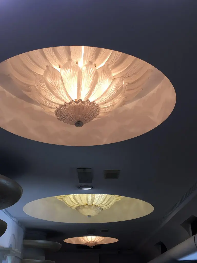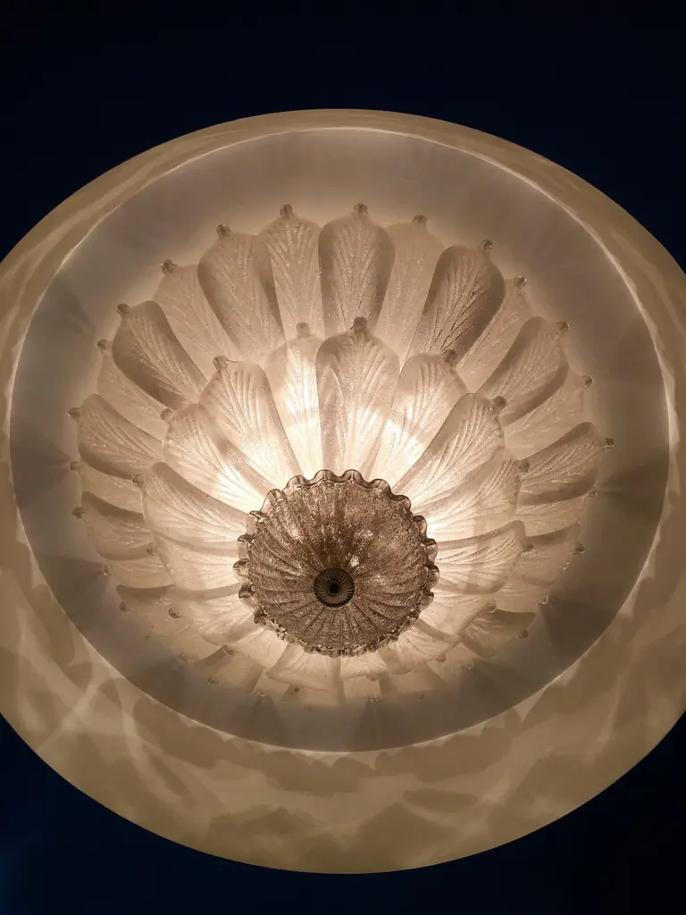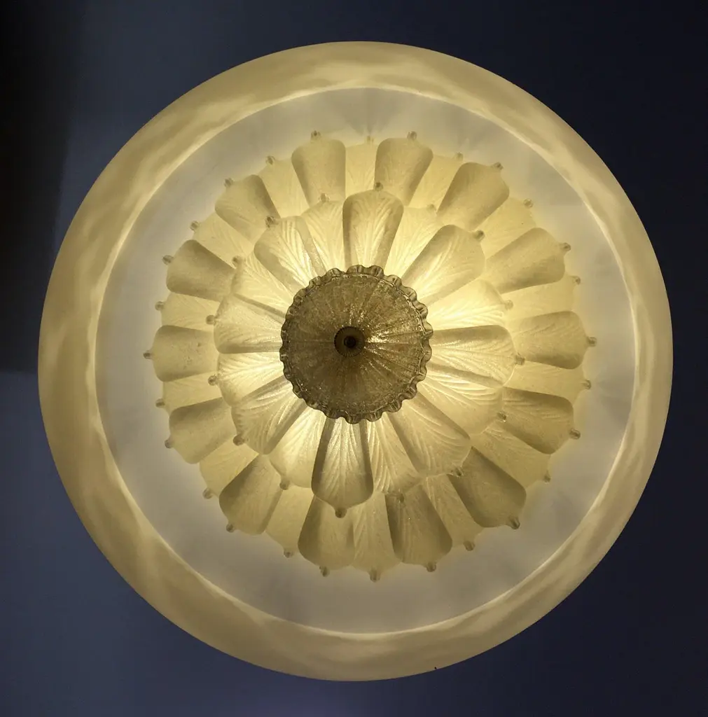 Pair Of Italian Flush Mount Chandeliers, Murano